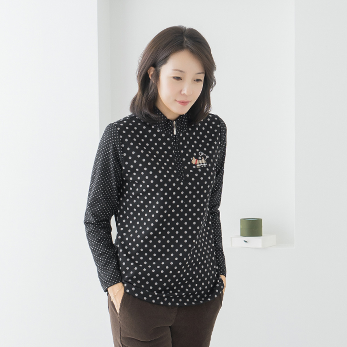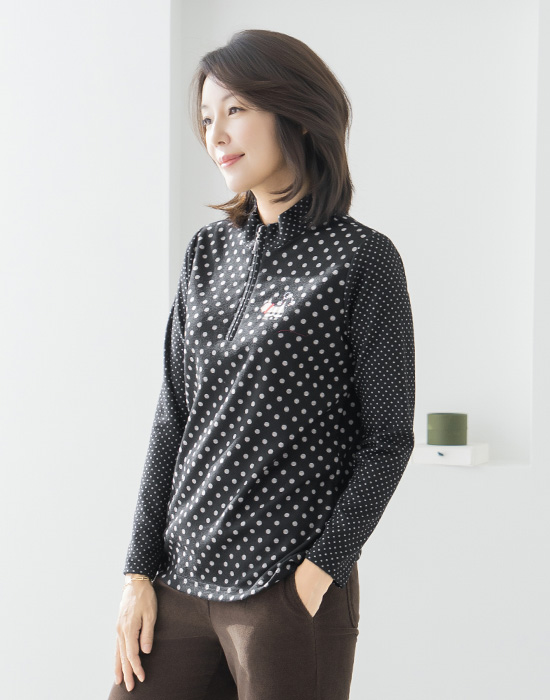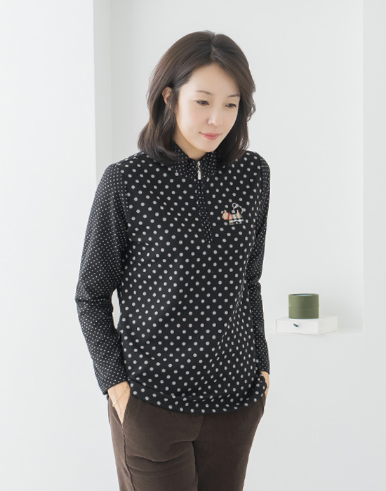 Polka Dot Half-Open Collar T-Shirt - TE2512017