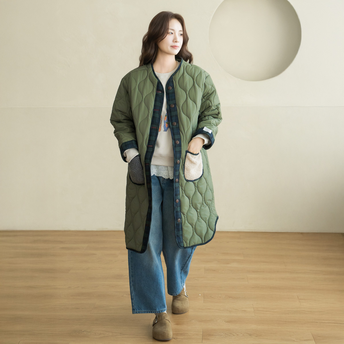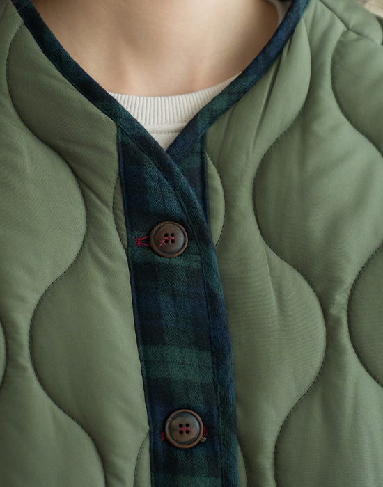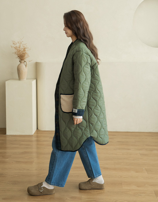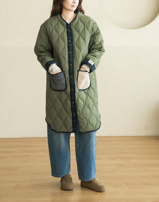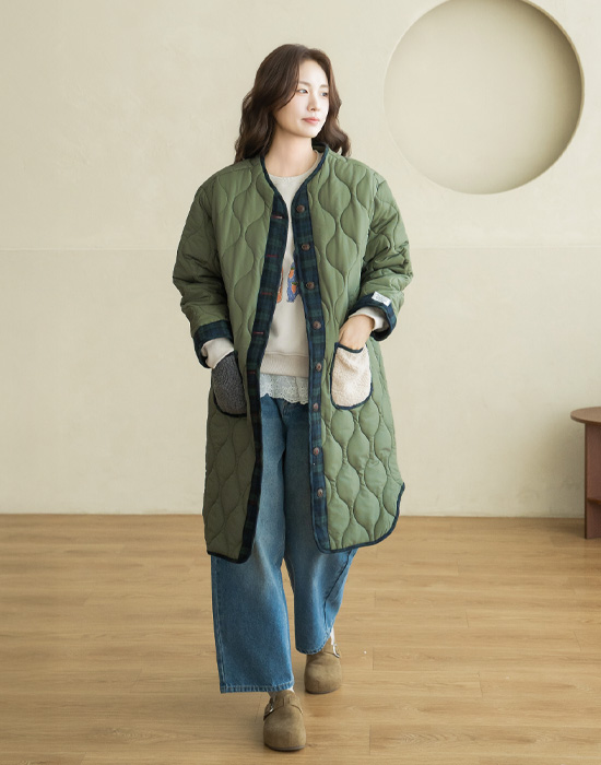 [Natural Poem] Vintage Check Long Padding Jumper - JP2512007 -