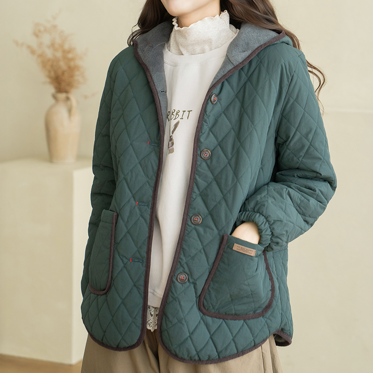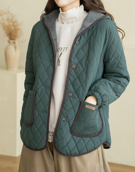 [Natural Poem] Cozy Hooded Quilted Jumper - JP2512008 -