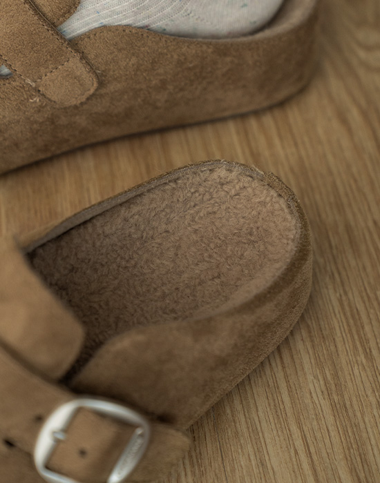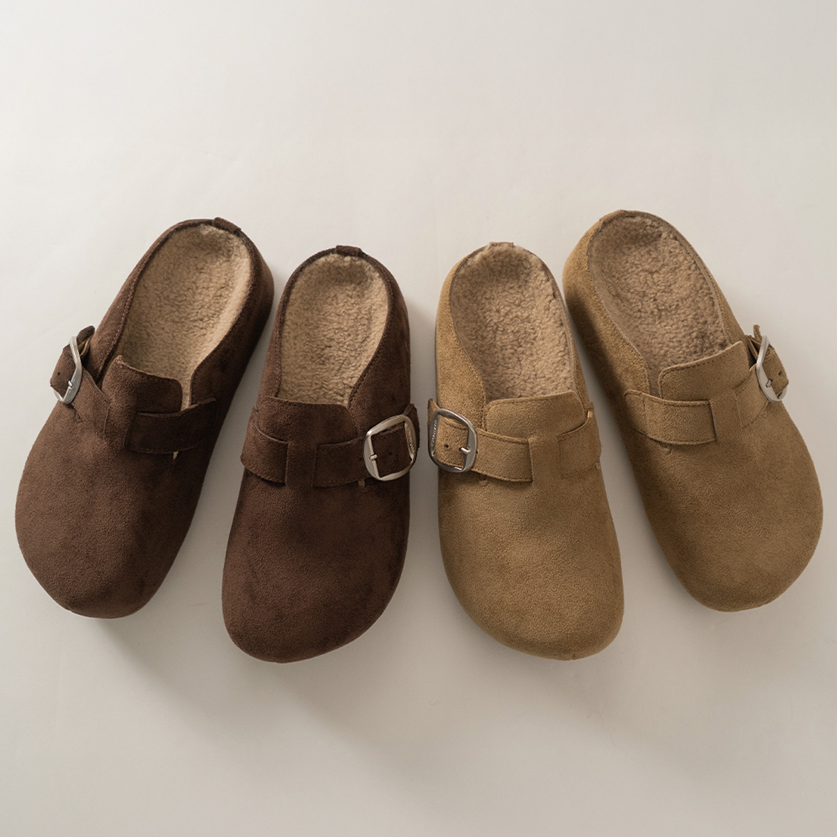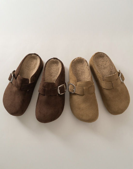 [Natural Poem] Suede Fur-Lined Slippers - SH2512005 -