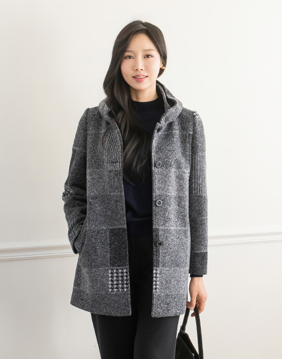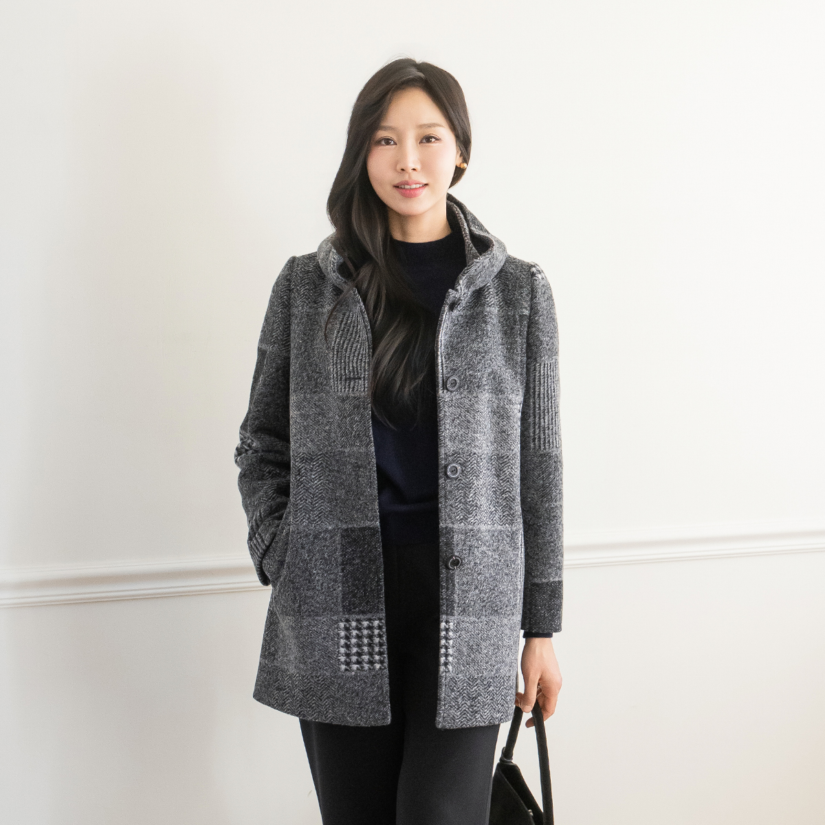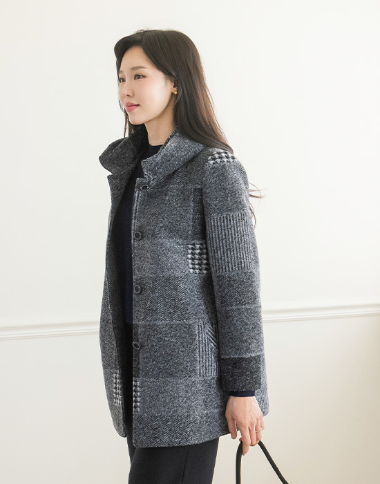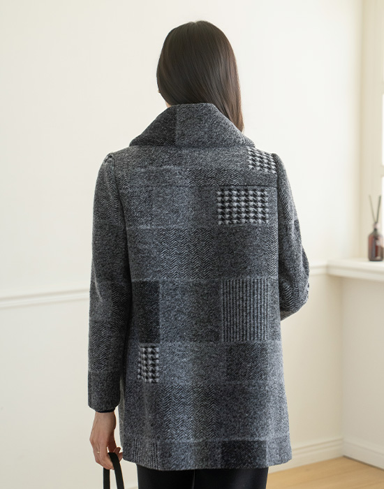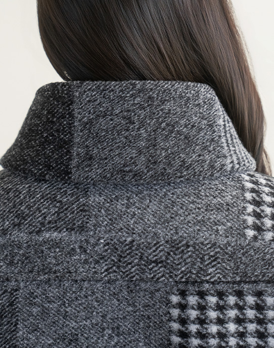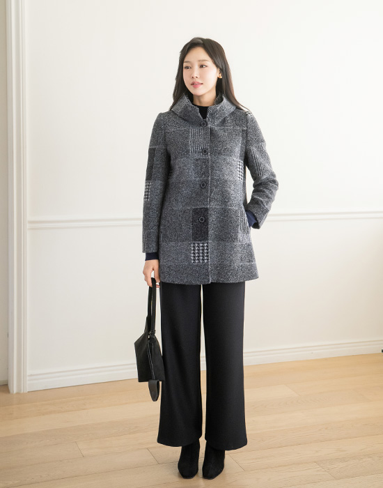 [Classy Madam] Patch High Neck Check Coat - CO2512006 -