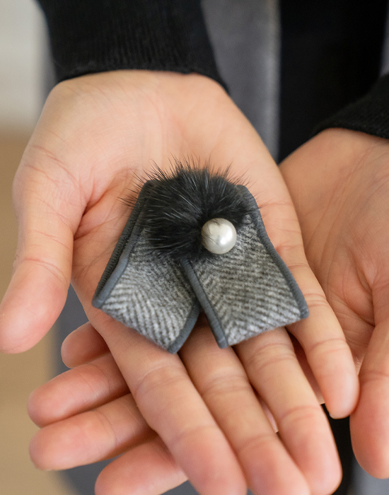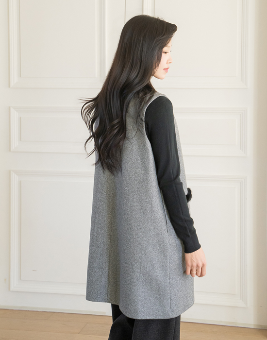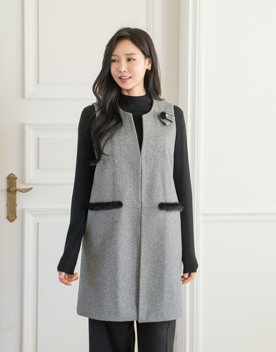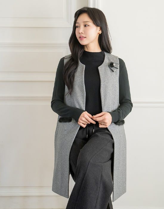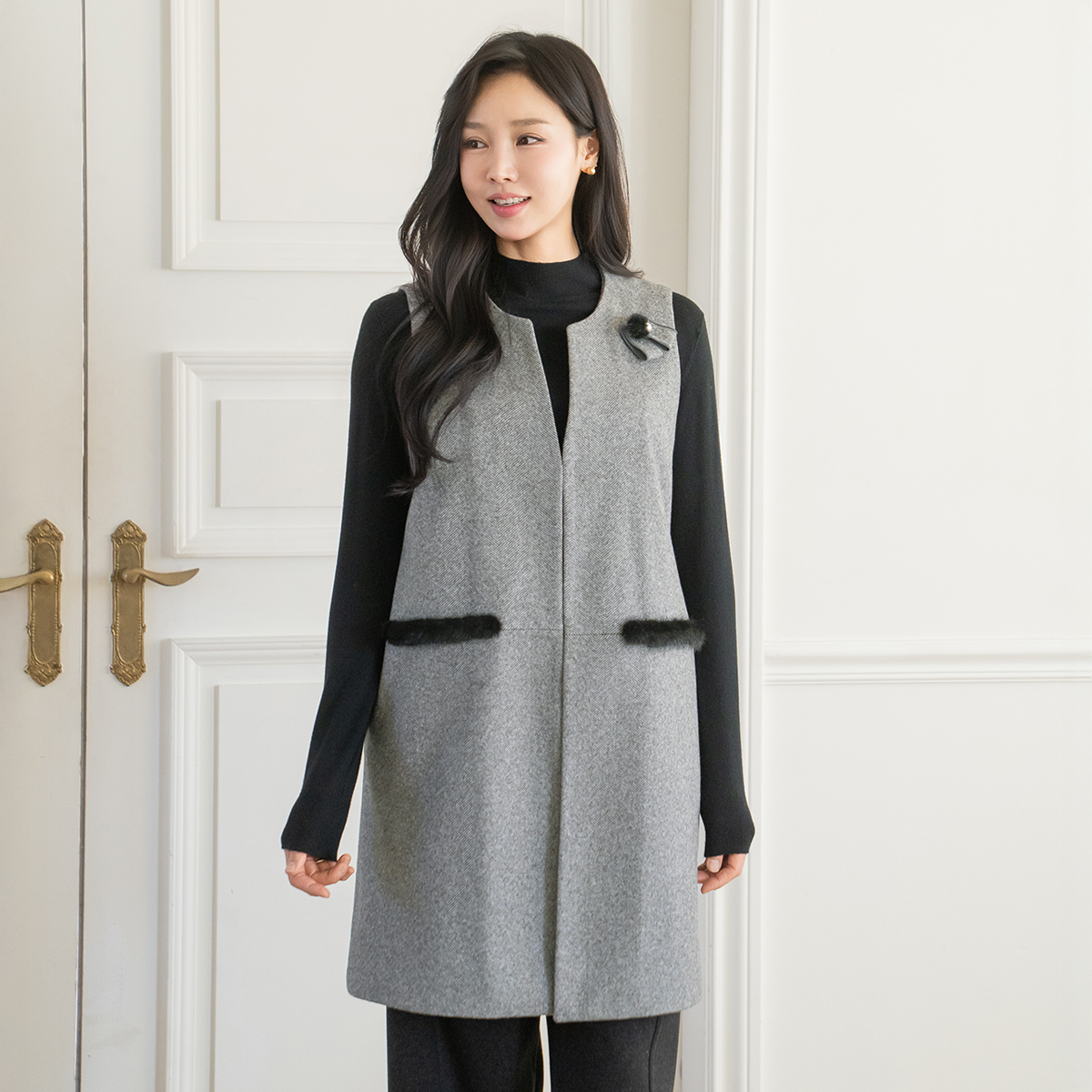 [Classy Madam] Herringbone Quilted Brooch Wool Vest - VE2512006 -