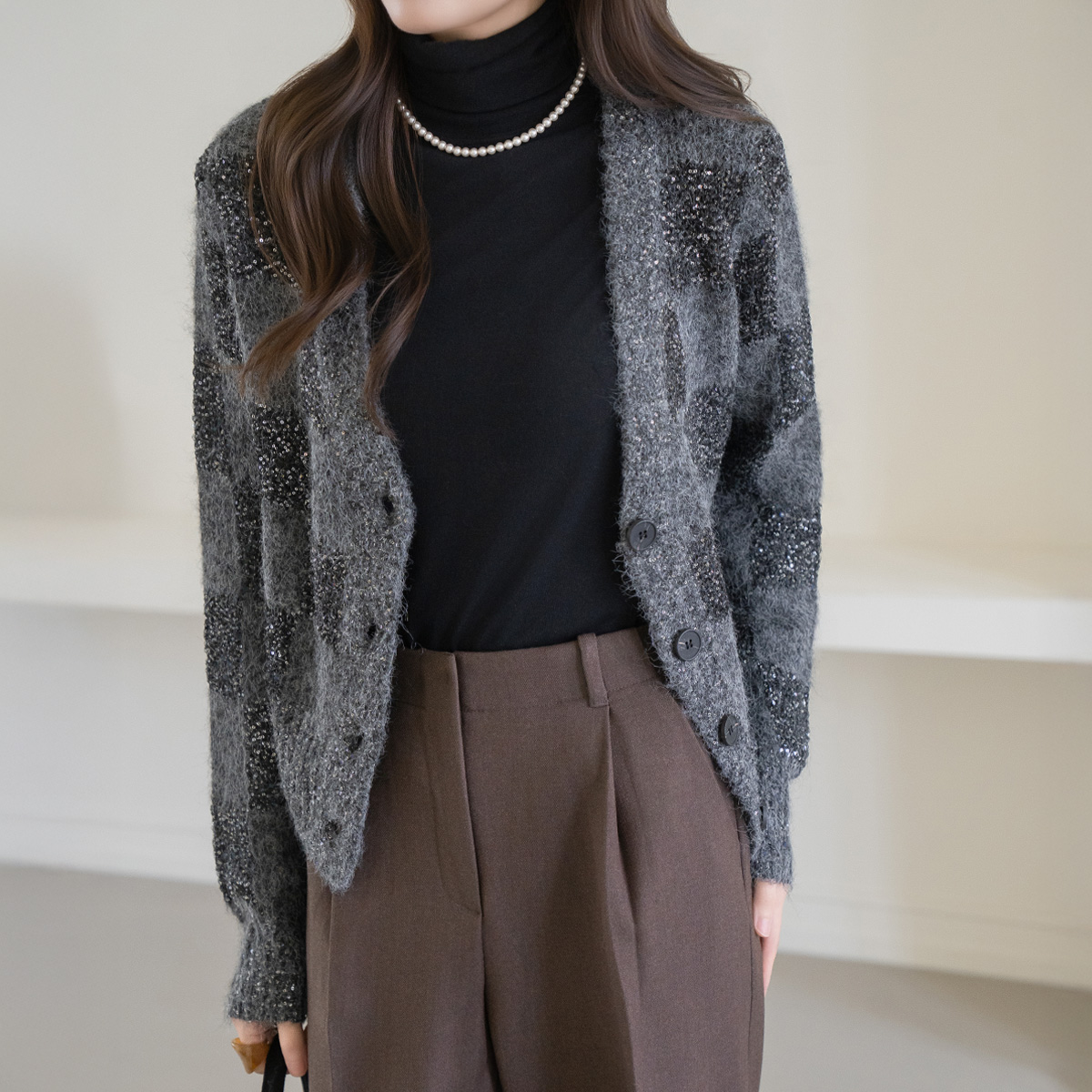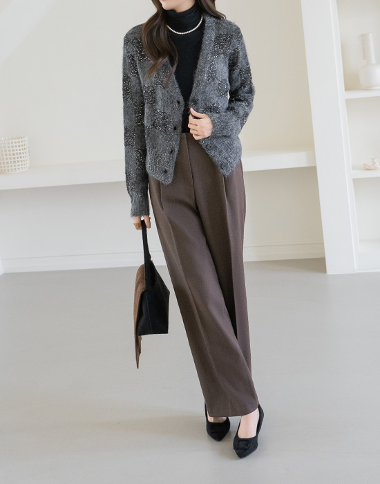 [Modern Basic] Hairy Bead Button Wool Cardigan - CA2512003 -