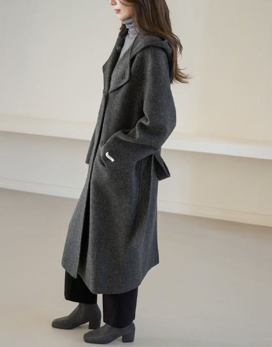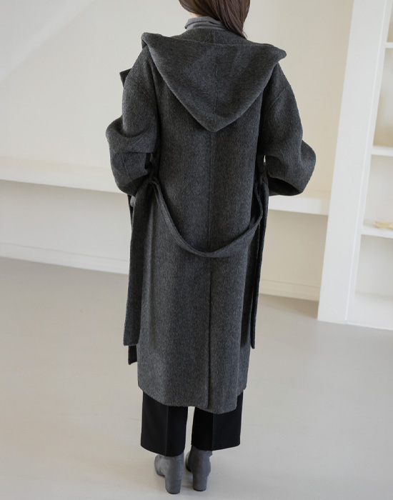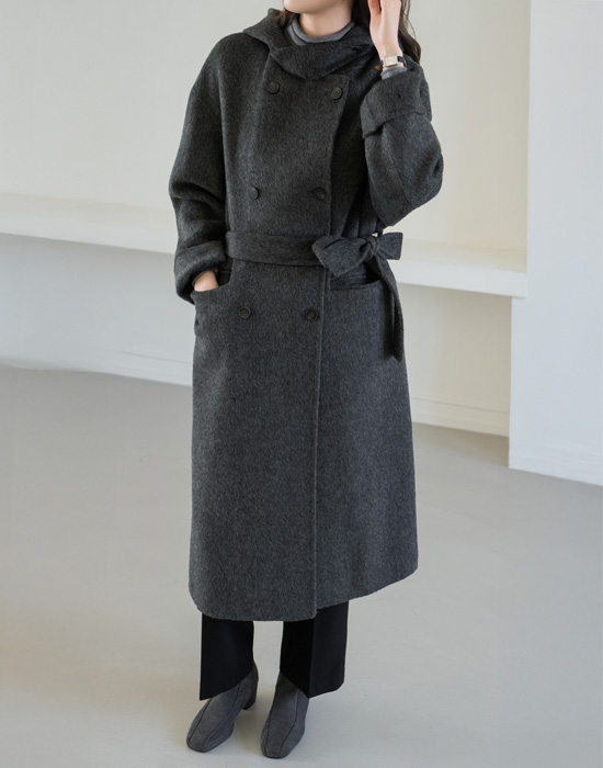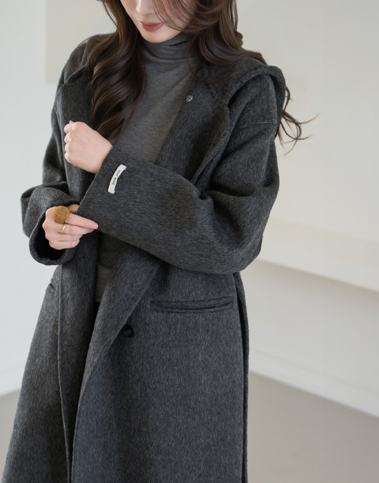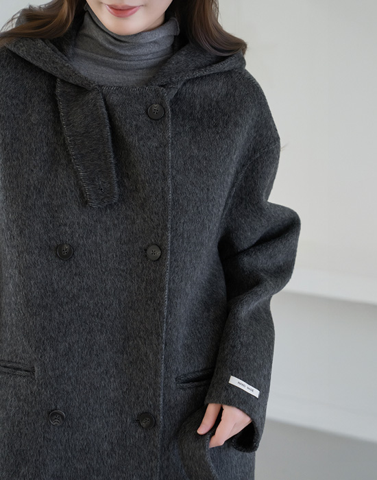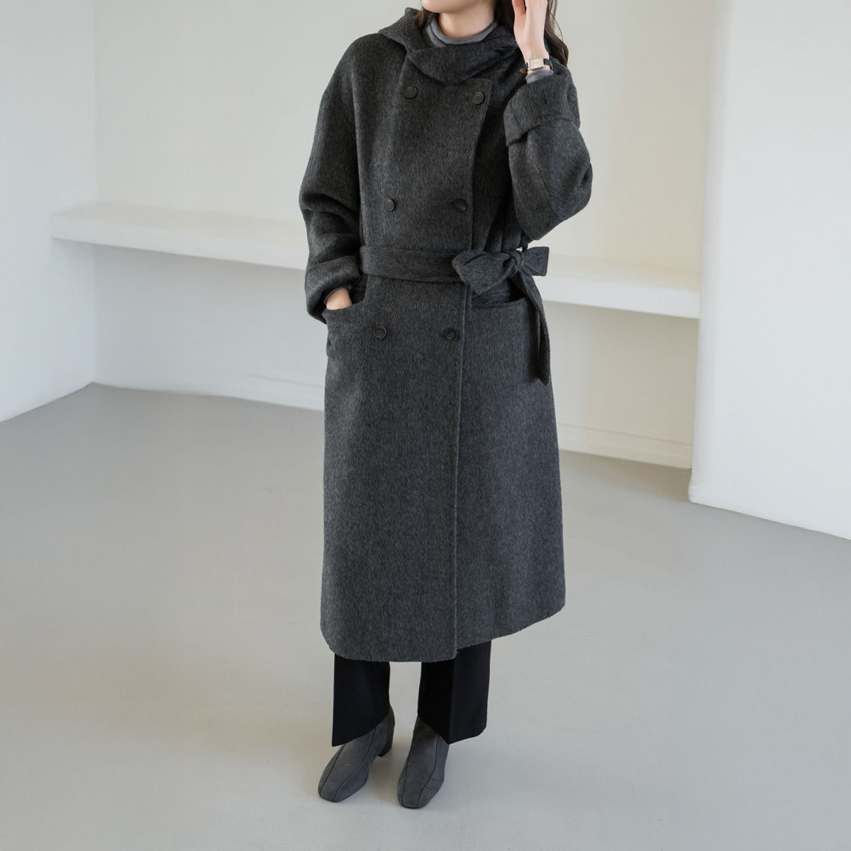 [Modern Basic] Double-button drawstring hooded long wool coat - CO2512008 -