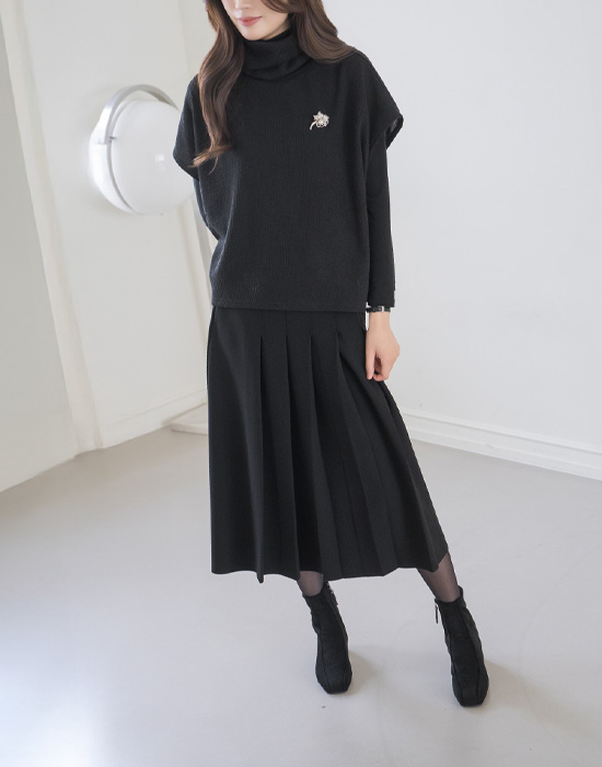 [Modern Basic] Short-sleeved pleated long skirt - SK2512004 -