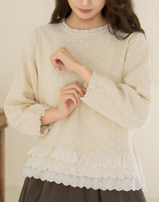 [Natural Poem] Lace Cotton Blouse - BL2512014-