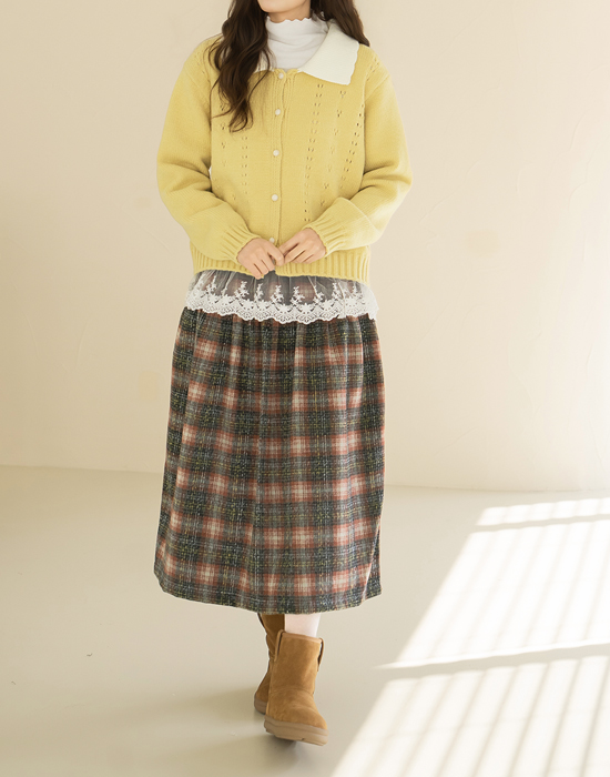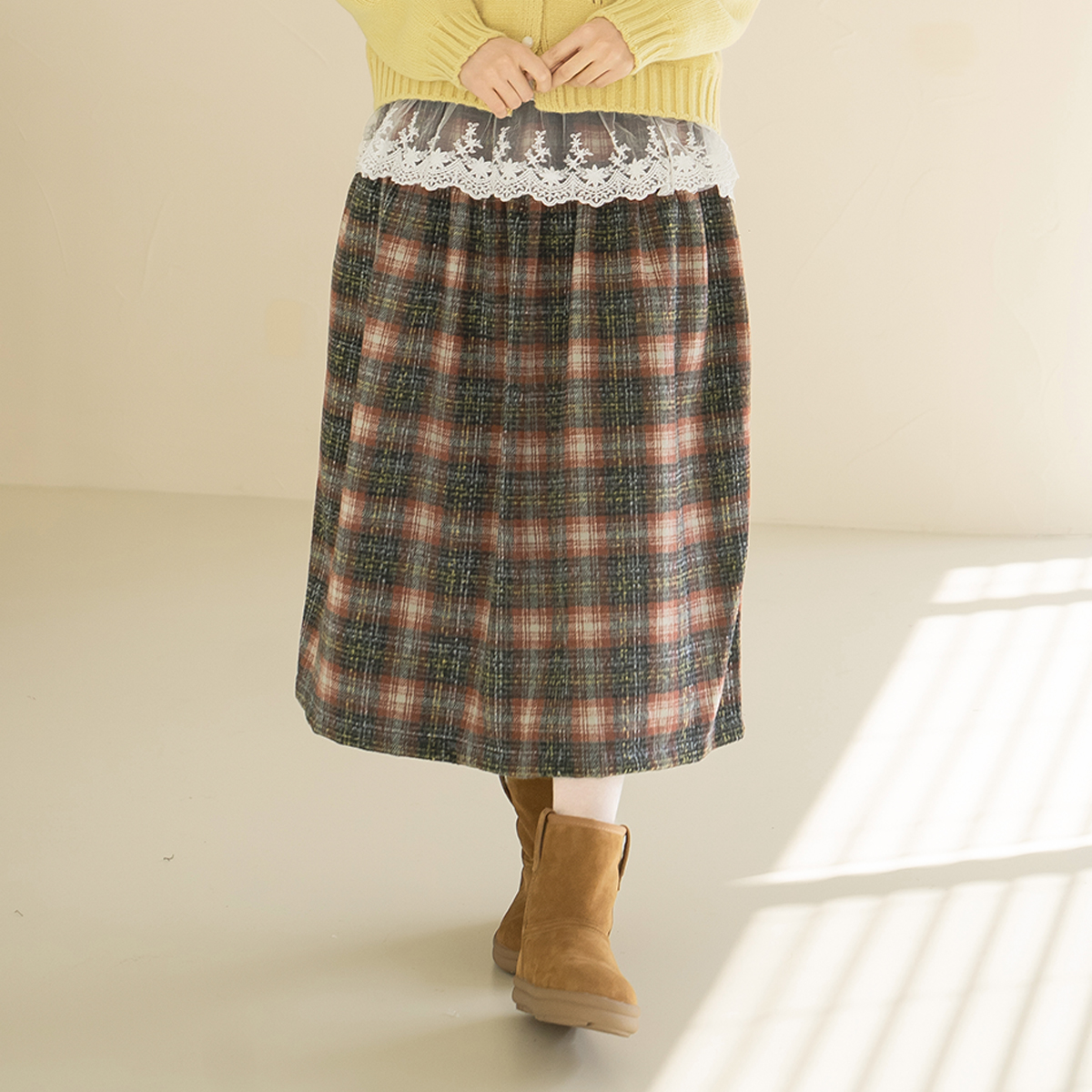 [Natural Poem] Wool Check Long Skirt - SK2512005 -