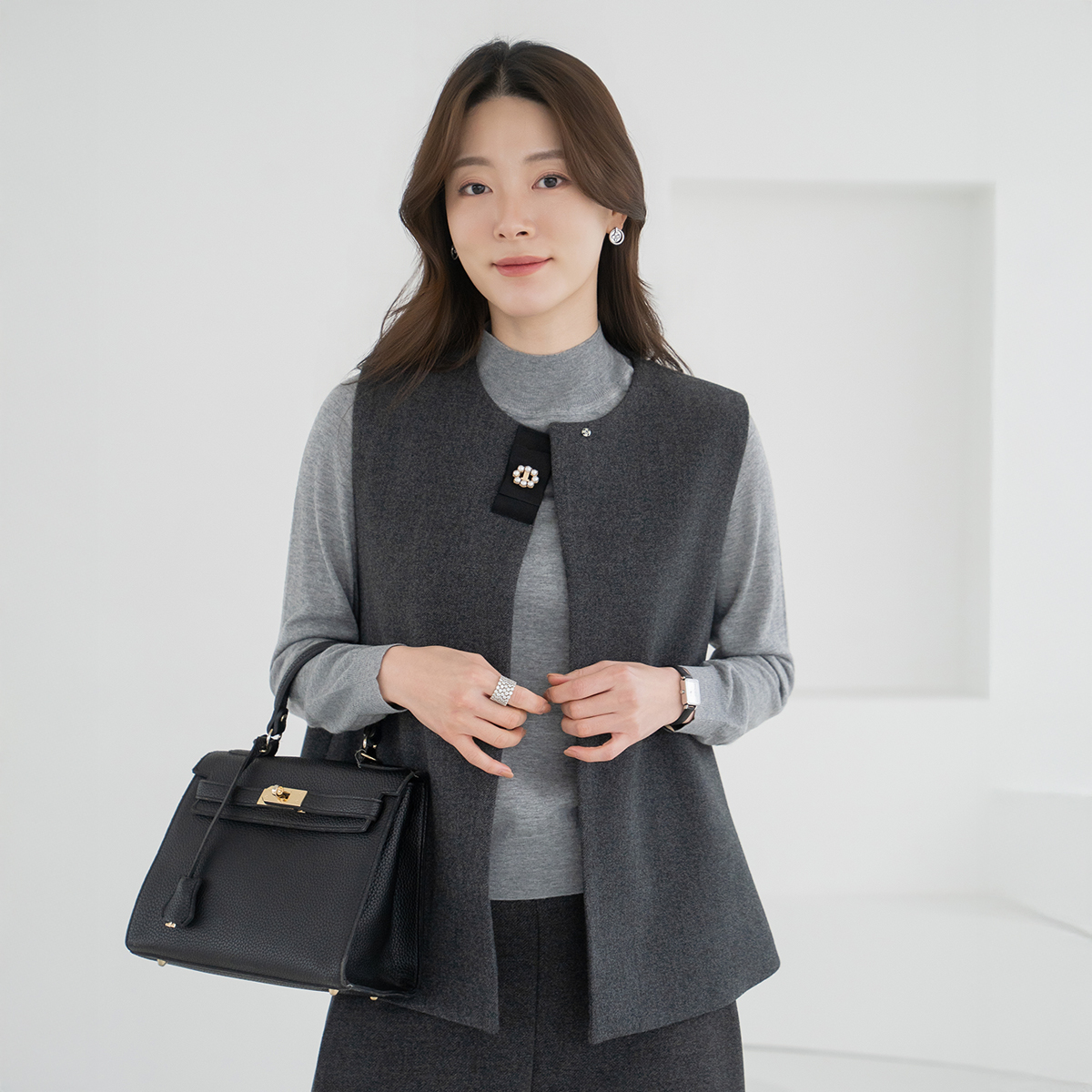[Classy Madam] Classy Snap Wool Vest - VE2512022 -