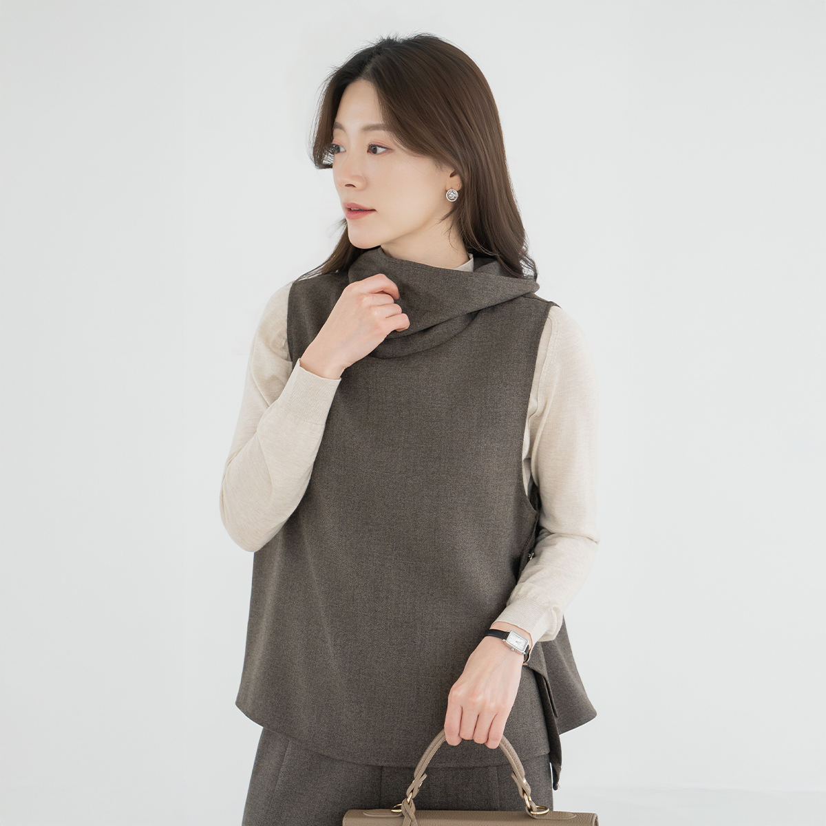 [Classy Madam] Turtleneck Slit Vest - VE2512023 -