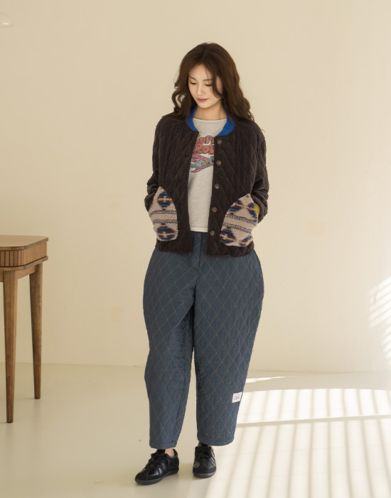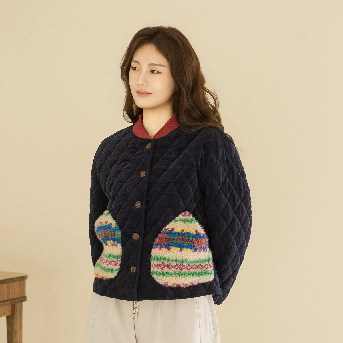 [Natural Poem] Pocket Color Block Quilted Jumper - JP2512025 -
