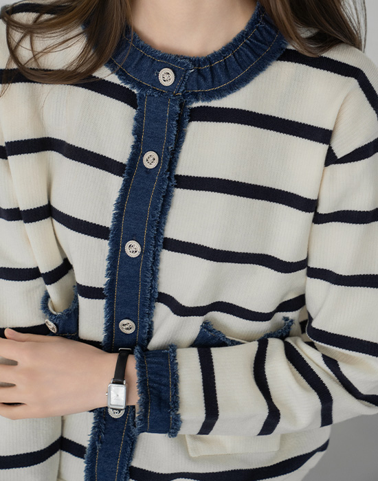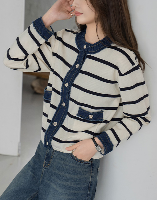 [Modern Basic] Single-breasted Denim Line Cardigan - CA2512011