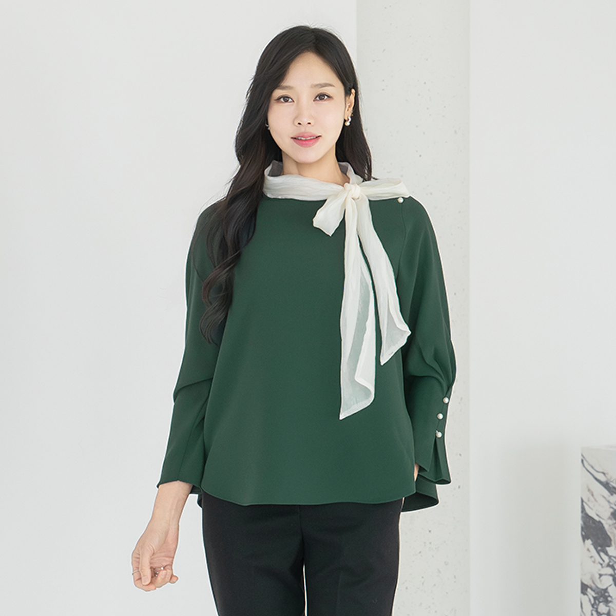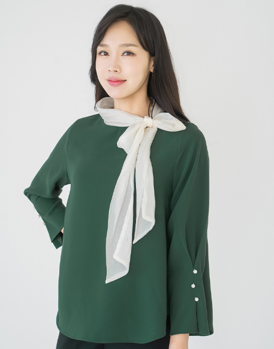 [Classy Madam] Ribbon Scarf Blouse - BL2512017 -