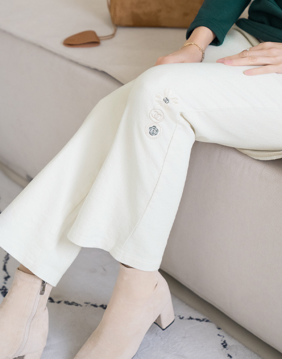 Embroidered Fleece Bootcut Pants - PN2601002 -