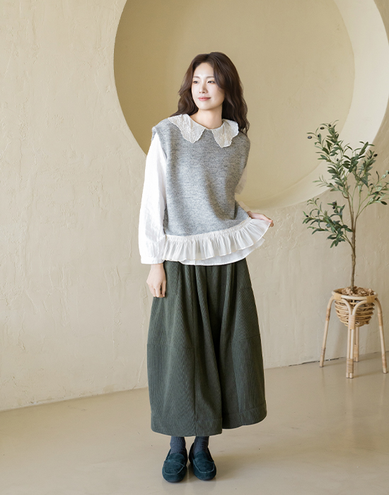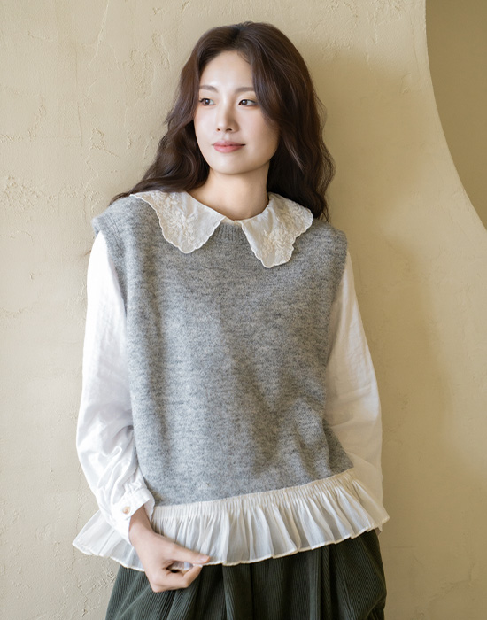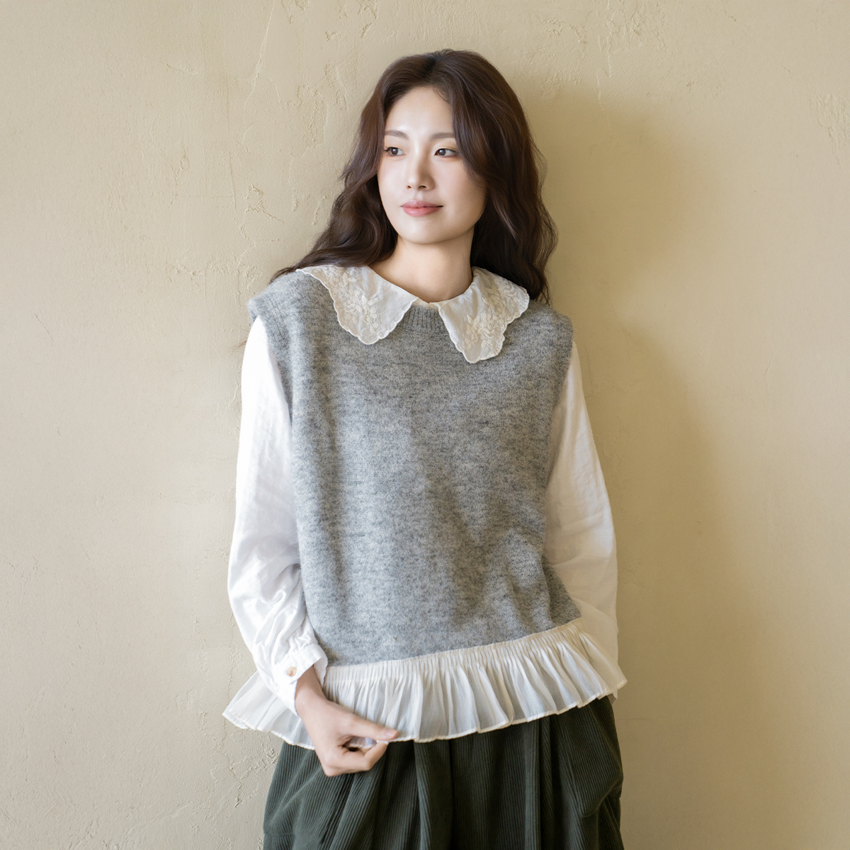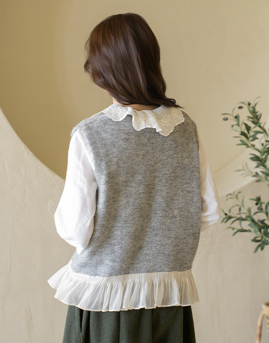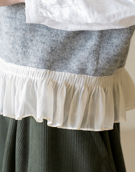 [Natural Poem] Chiffon Frill Knit Vest - VE2601004 -