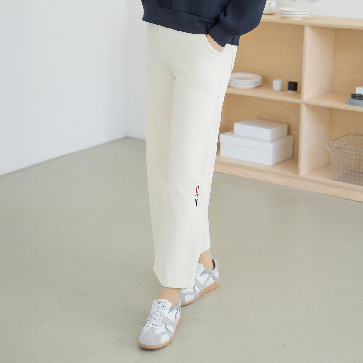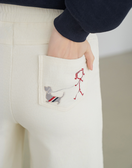 Embroidered Golden Fleece Wide Pants - PN2601017