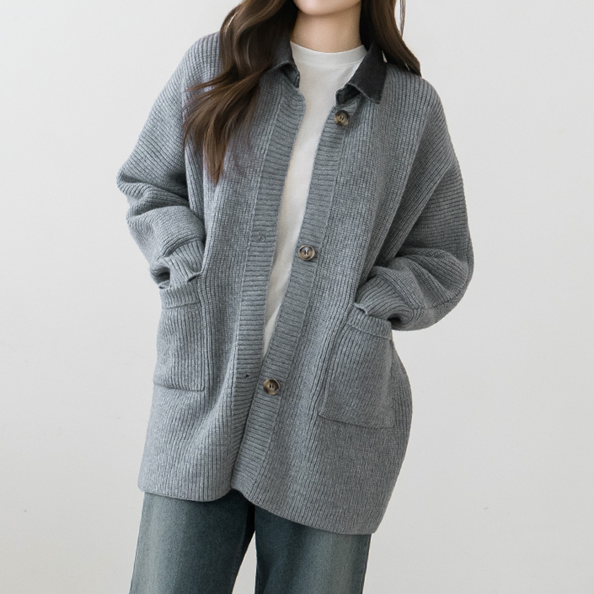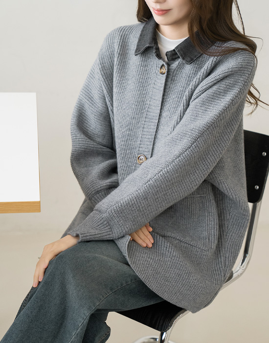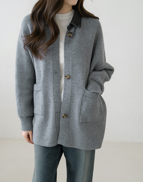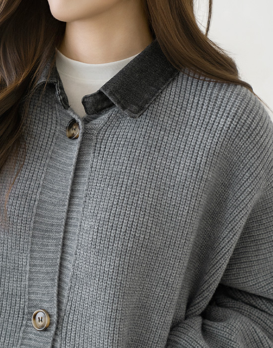 [Modern Basic] Photo Denim Collar Overfit Cardigan - CA2601006 -