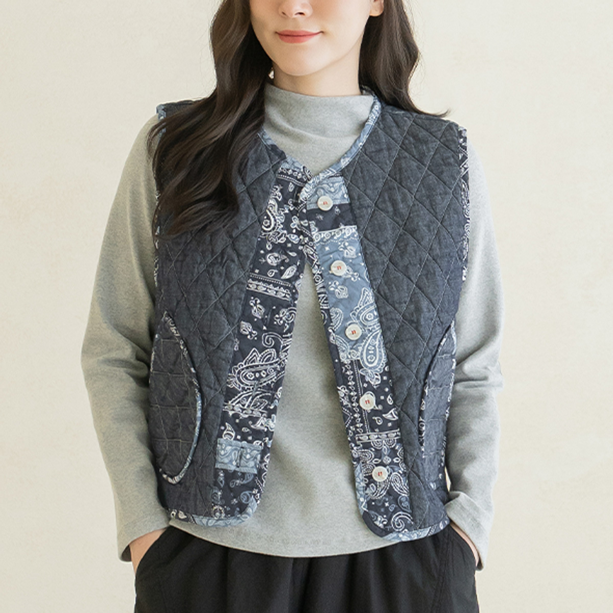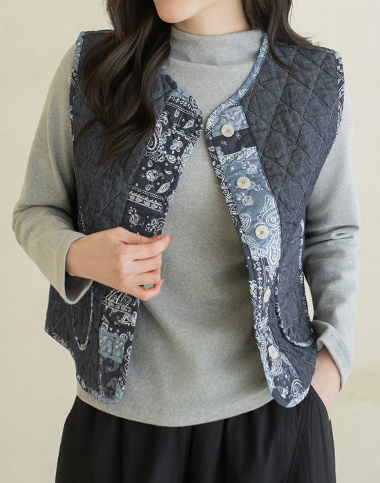 [Natural Poem] Paisley Quilted Vest - VE2601010 -
