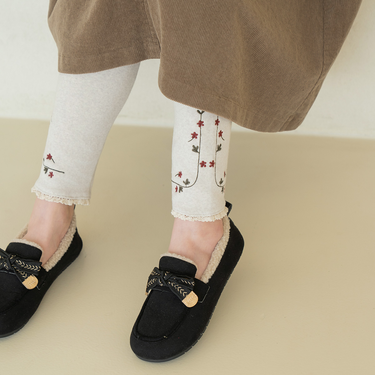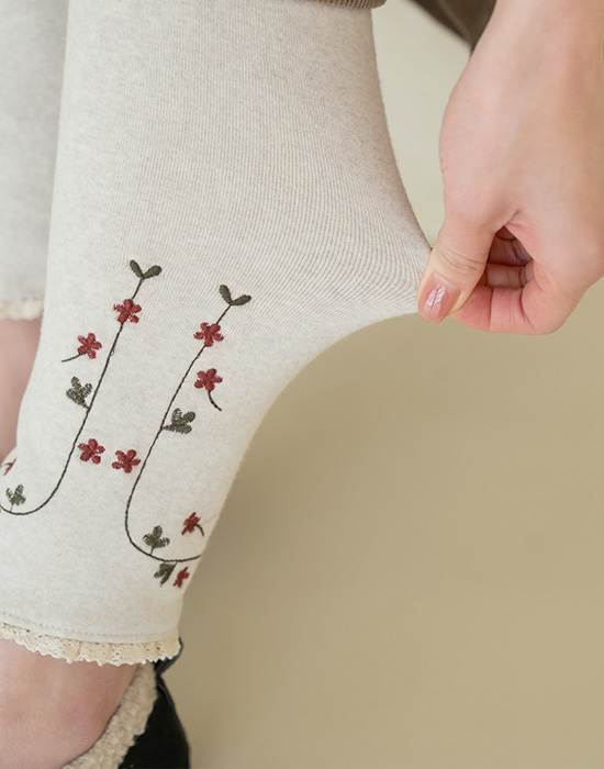 [Natural Poem] Flower Embroidered Leggings - PN2601022