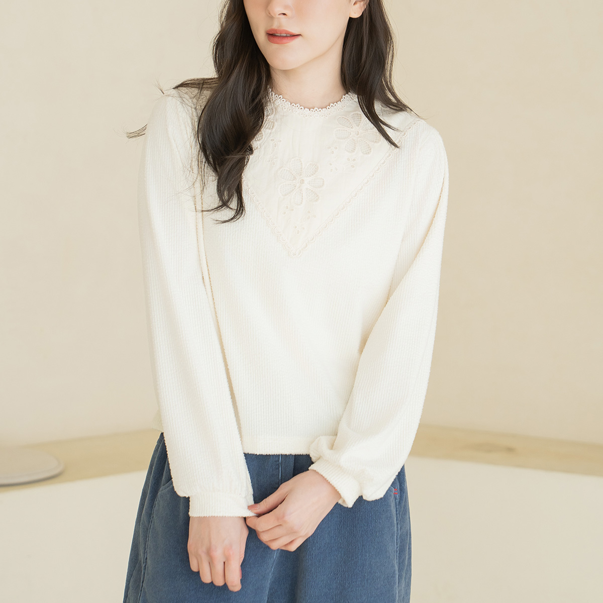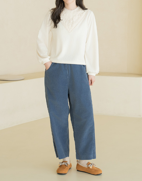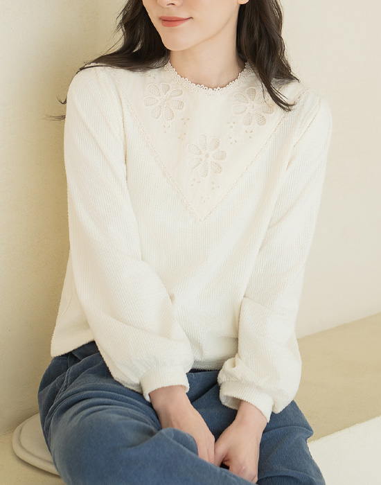 [Natural Poem] Lace ribbed blouse - BL2601010 -