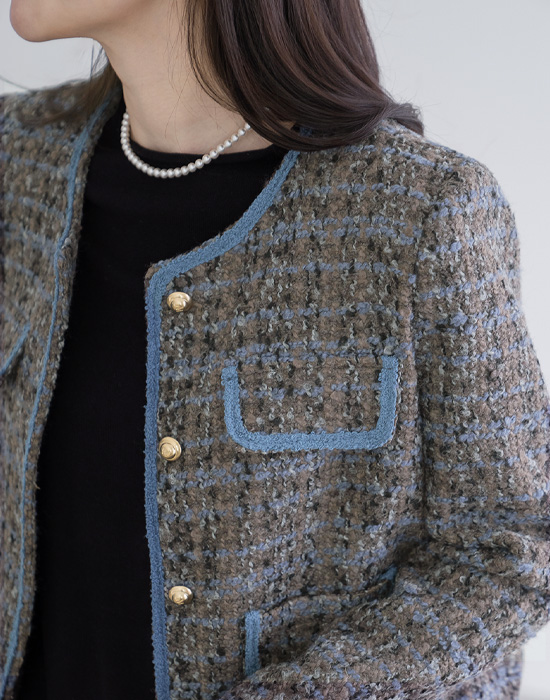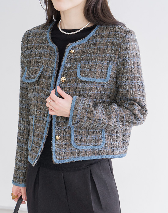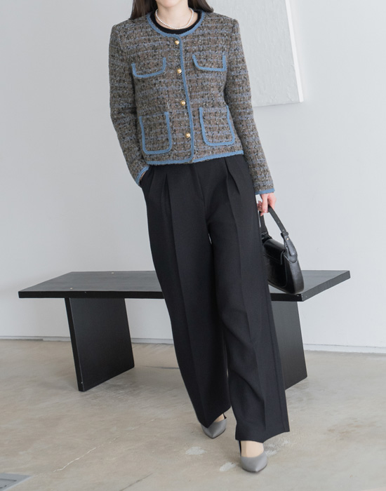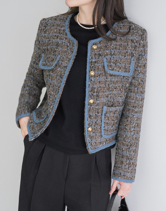 [Modern Basic] Liz Buckle Tweed Wool Jacket - JK2601008 -