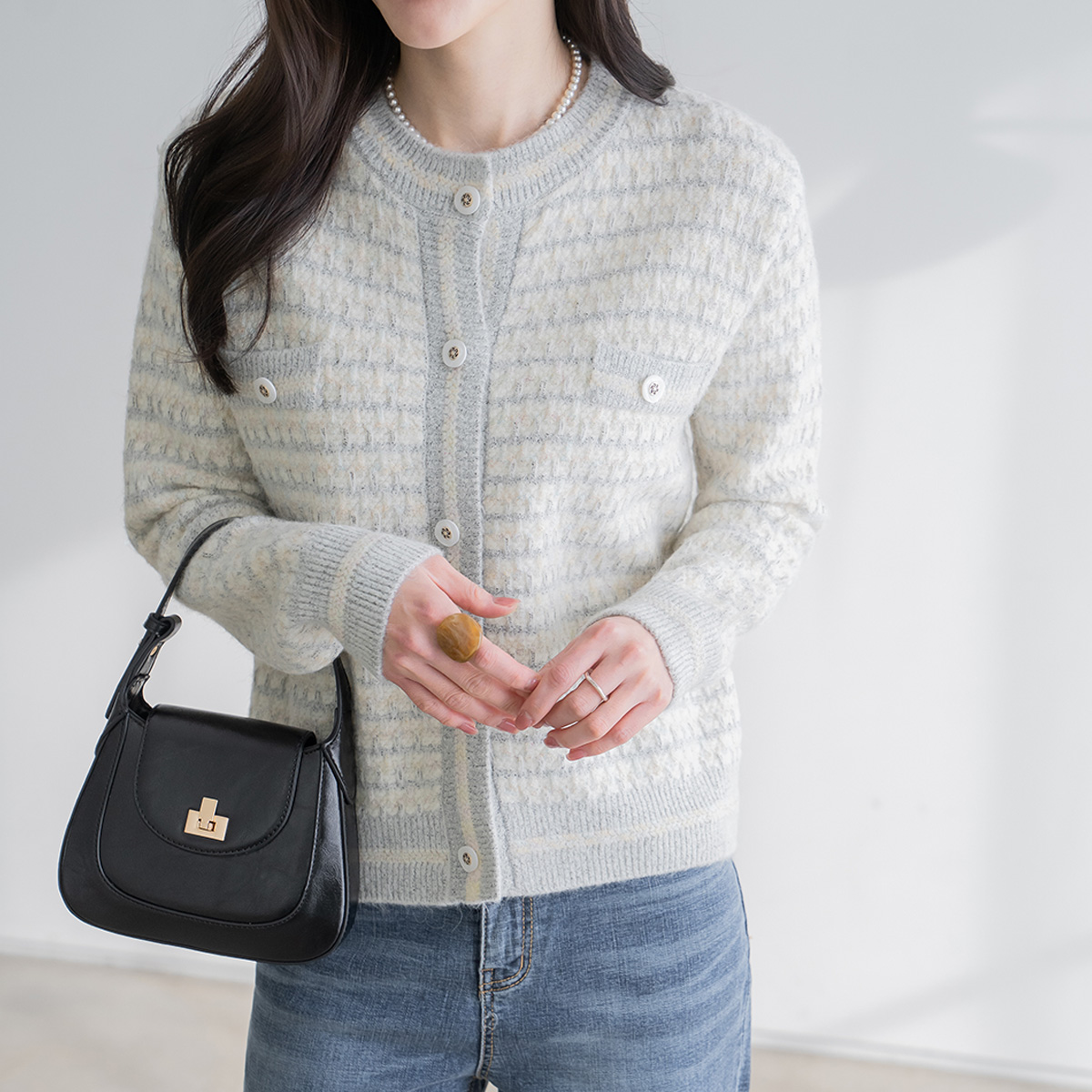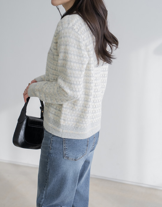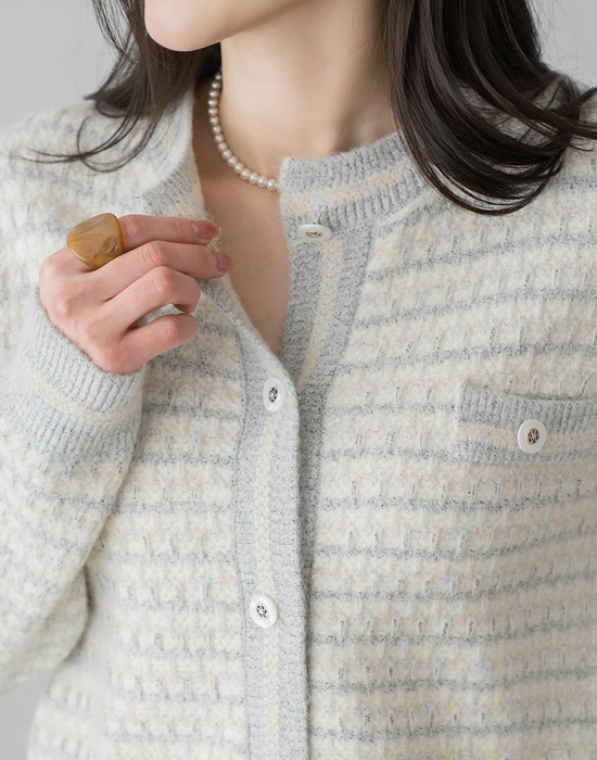 [Modern Basic] Mother-of-pearl Tweed Wool Cardigan - CA2601018