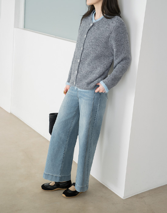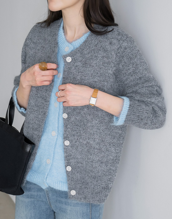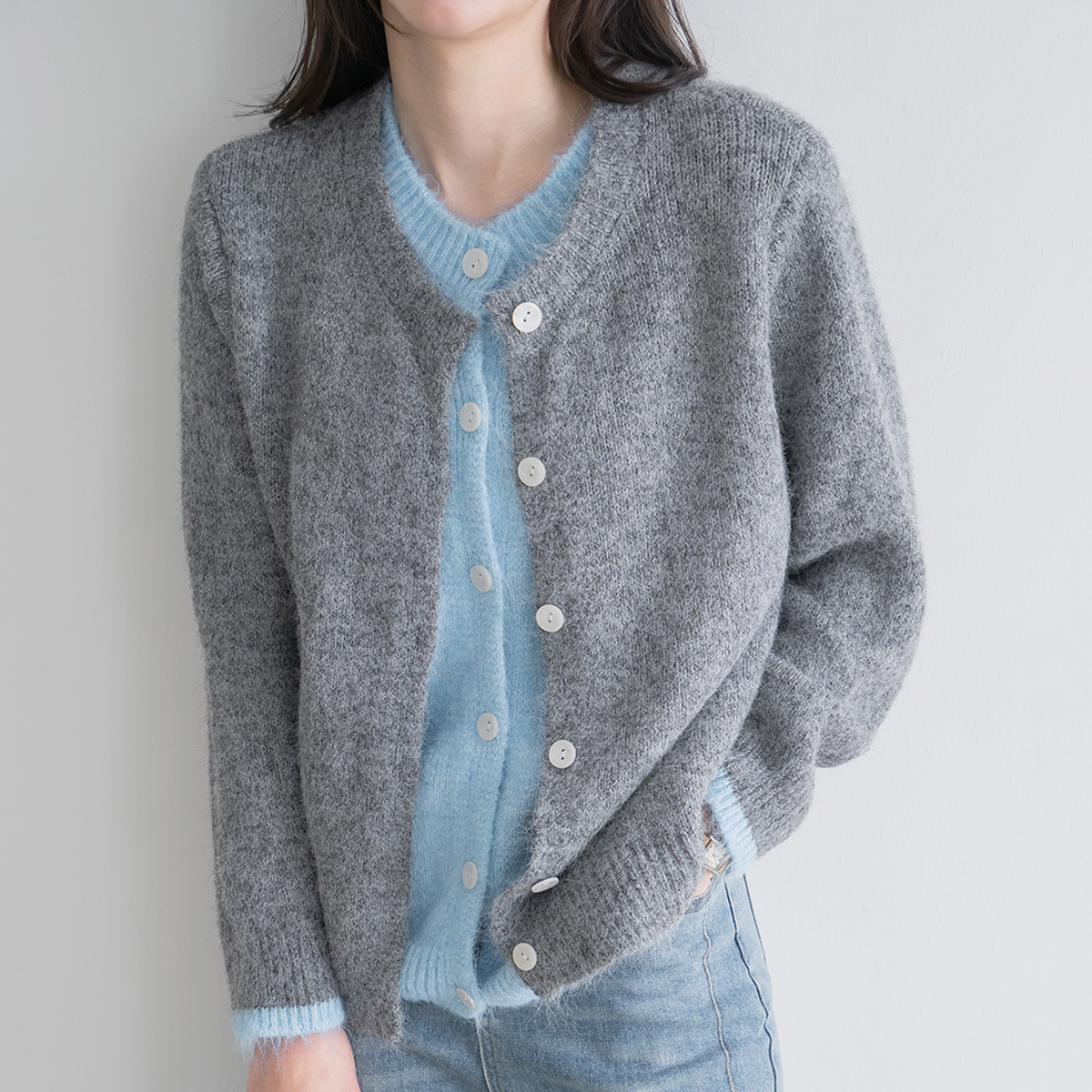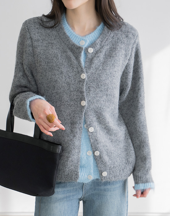 [Modern Basic] Hairy Color Block Button Cardigan - CA2601015 -