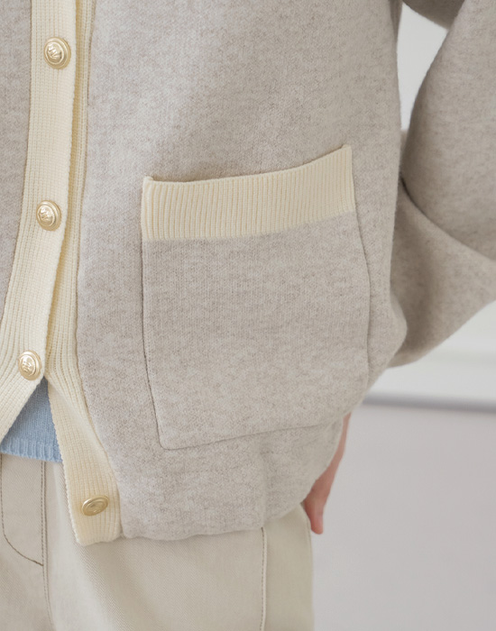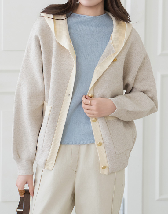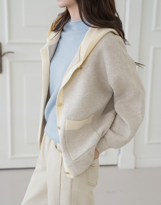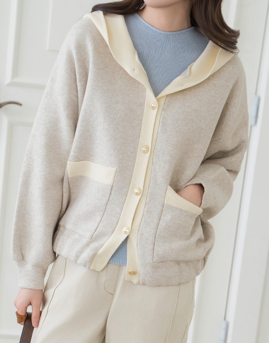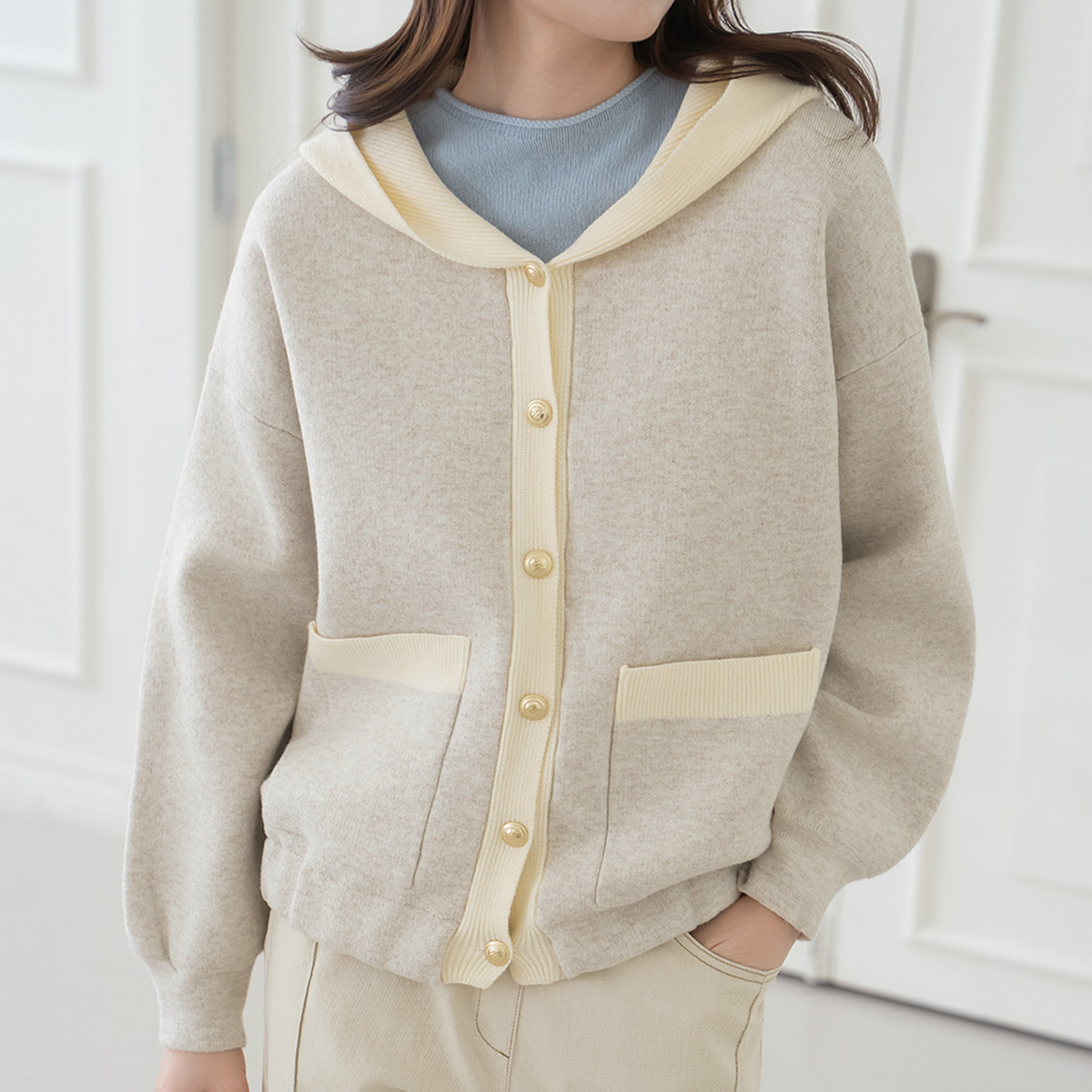 [Modern Basic] Hooded Two-tone Knit Wool Cardigan - CA2602002 -