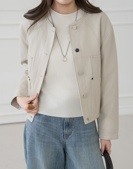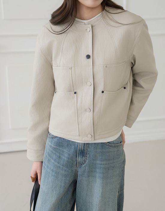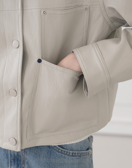 [Modern Basic] Arthur Button Pintuck Leather Jacket - JK2602005 -