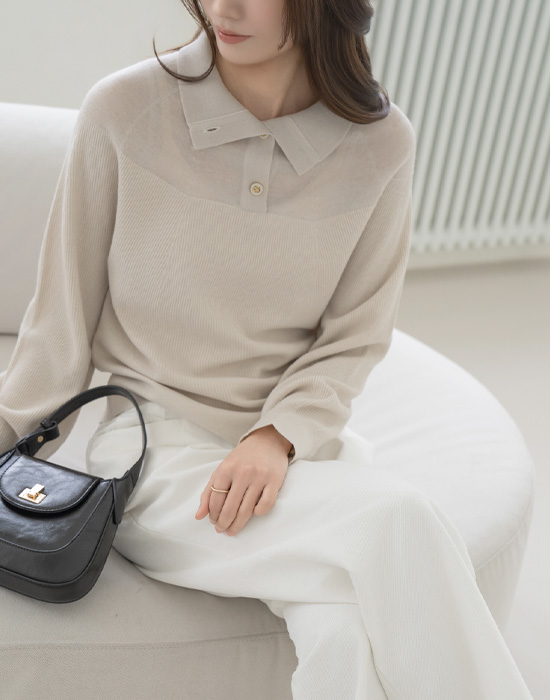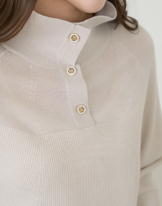 [Modern Basic] Button High Neck Wool Knit T-Shirt - TE2602002 -