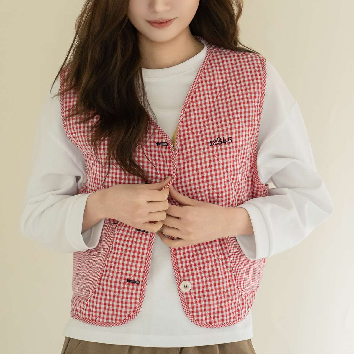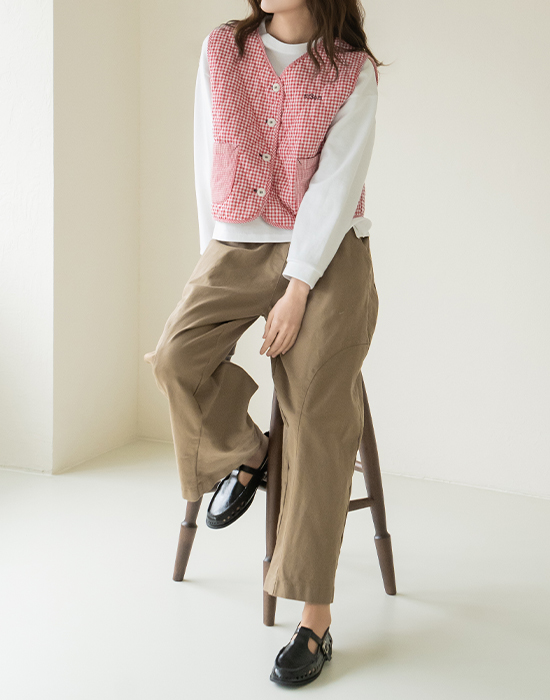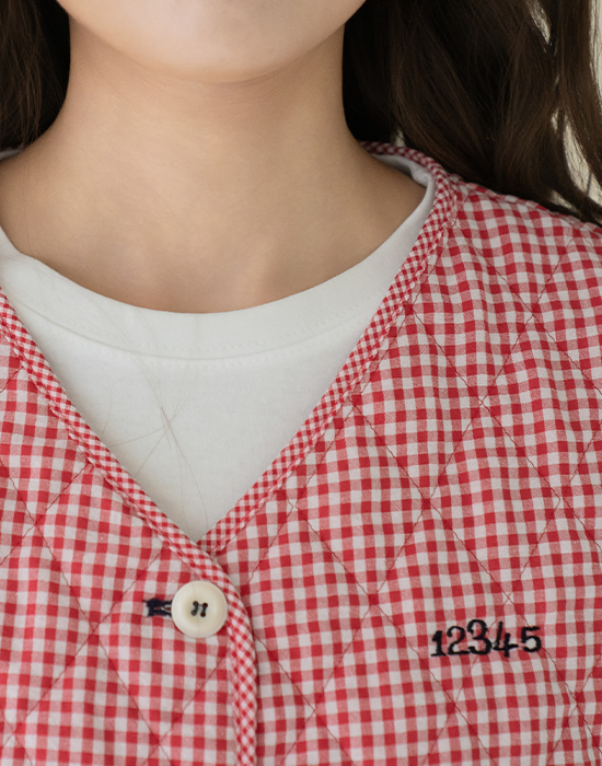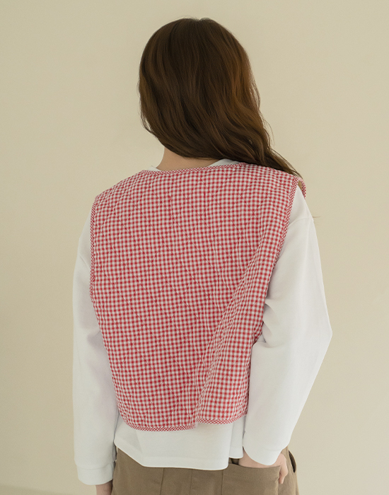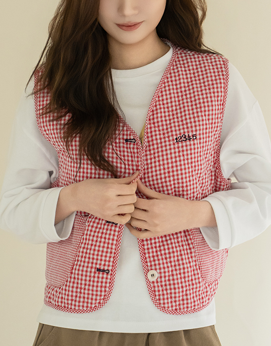 [Natural Poem] Gingham Check Embroidered Vest - VE2602006 -