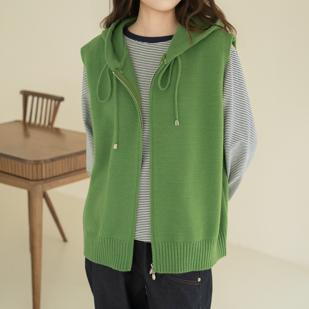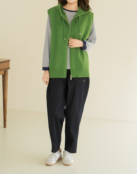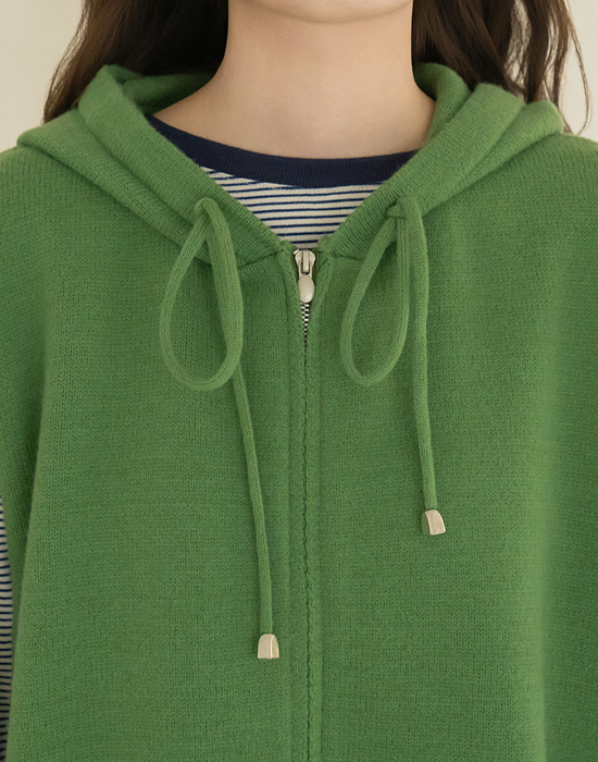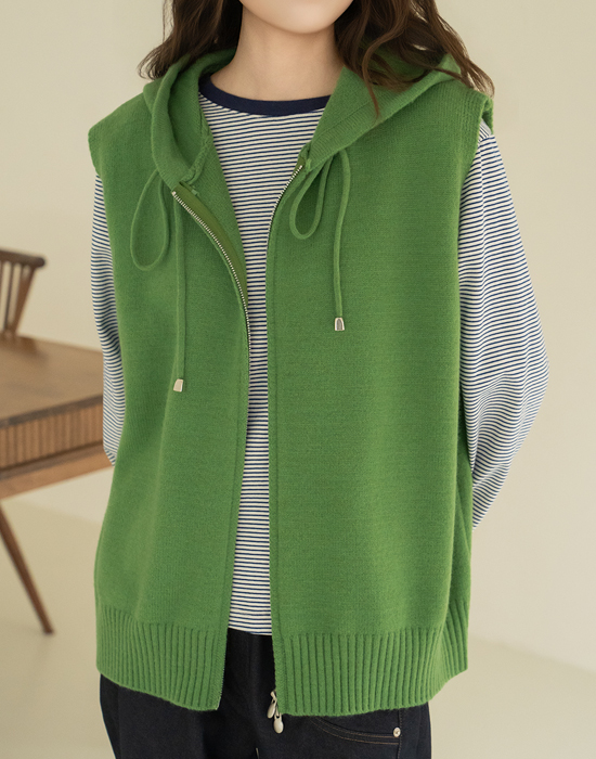 [Natural Poem] Hooded Zip-Up Knit Vest - VE2602005 -