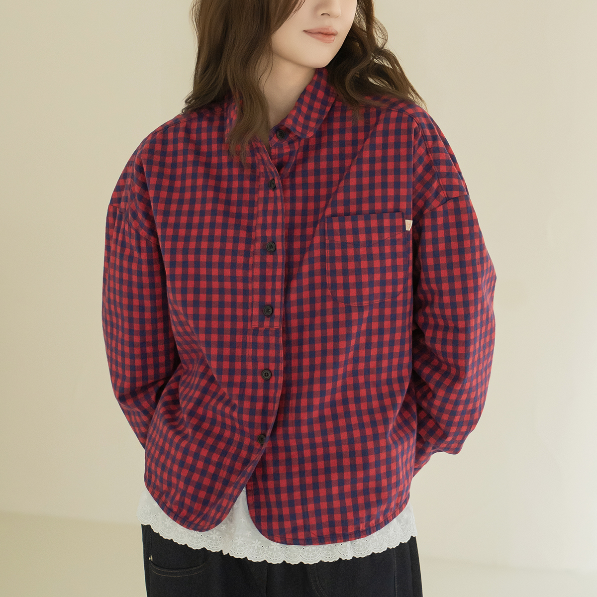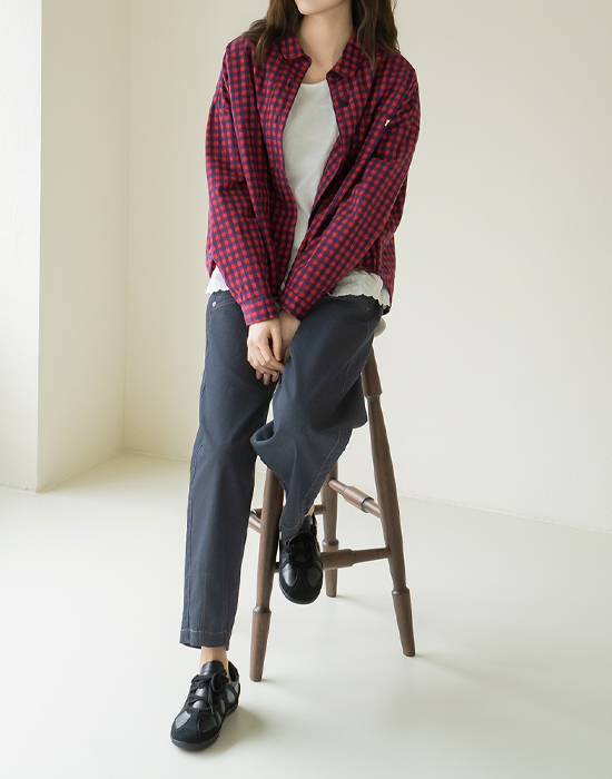 [Natural Poem] Round Collar Check Shirt - BL2602017-