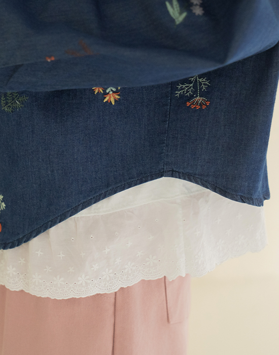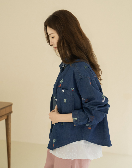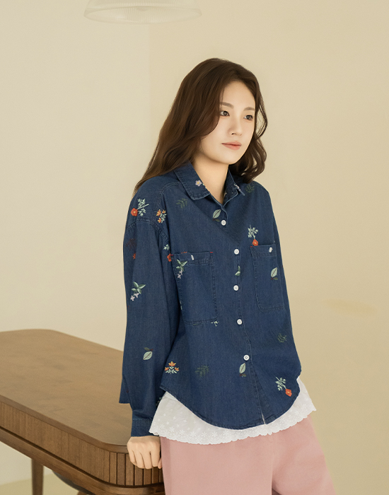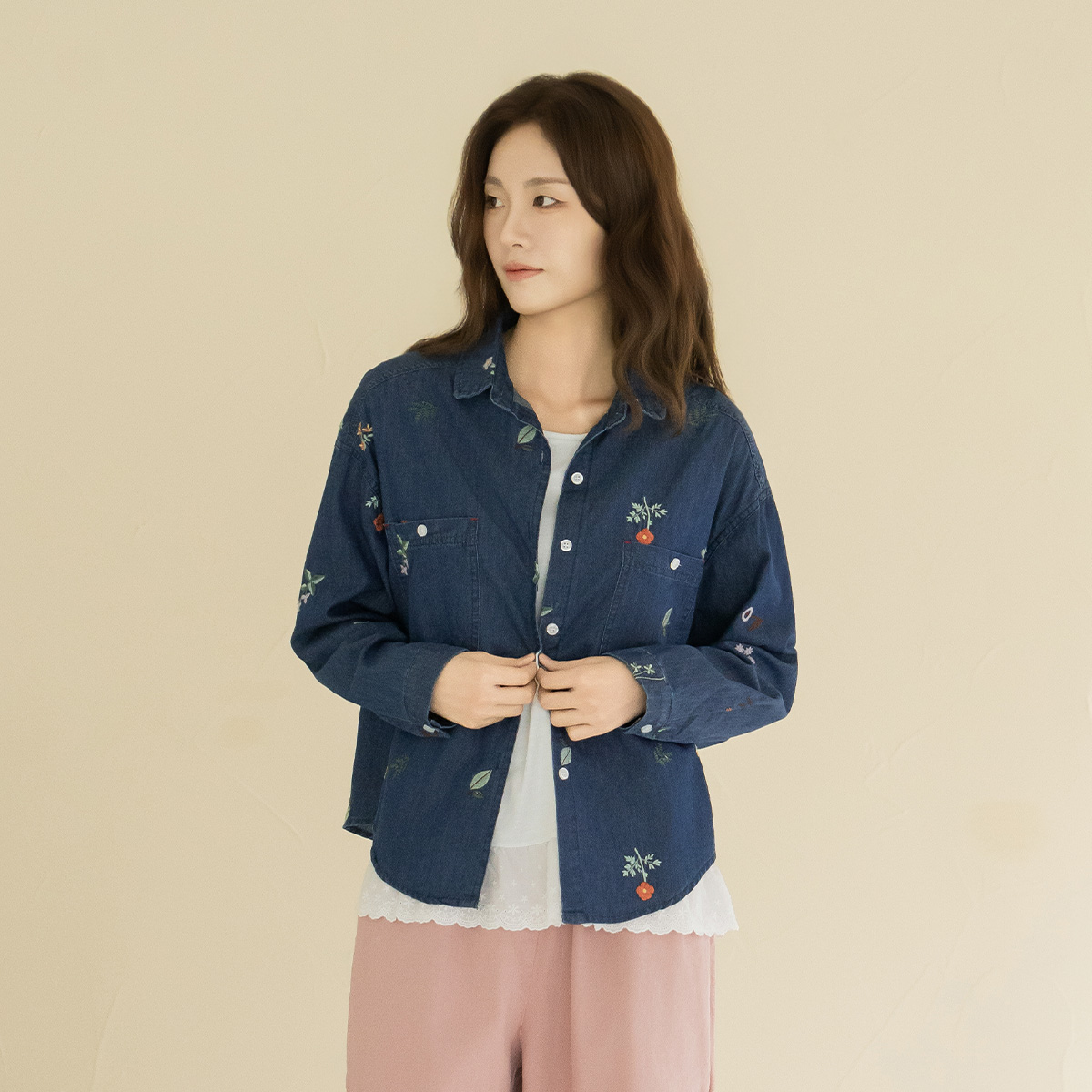 [Natural Poem] Flower Embroidered Denim Shirt - BL2602018-