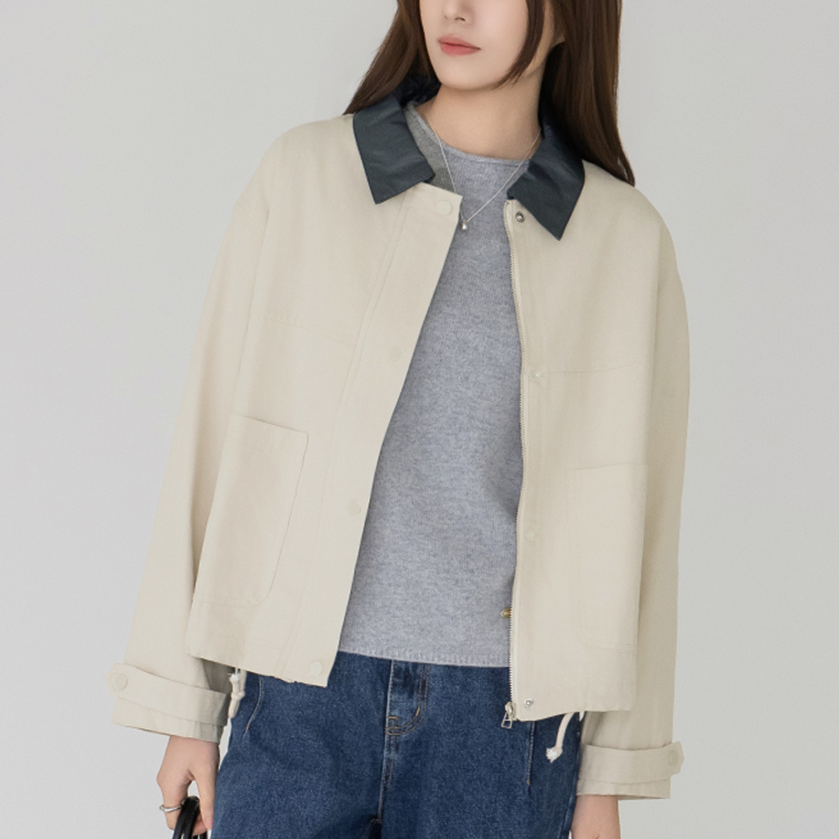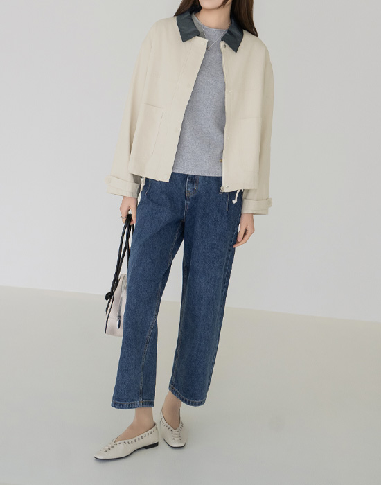 [Modern Basic] Pony Leather Collar Cotton Jacket - JK2603011 -