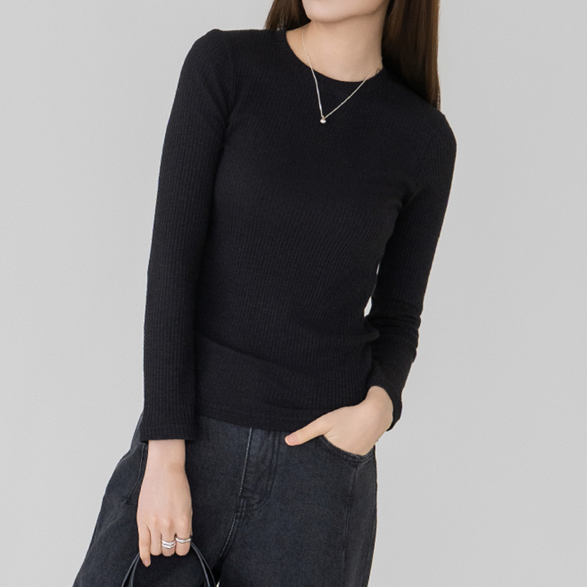 [Modern Basic] Ribbed Modal Spandex T-shirt-TE2603015-