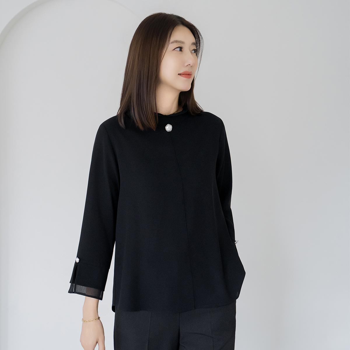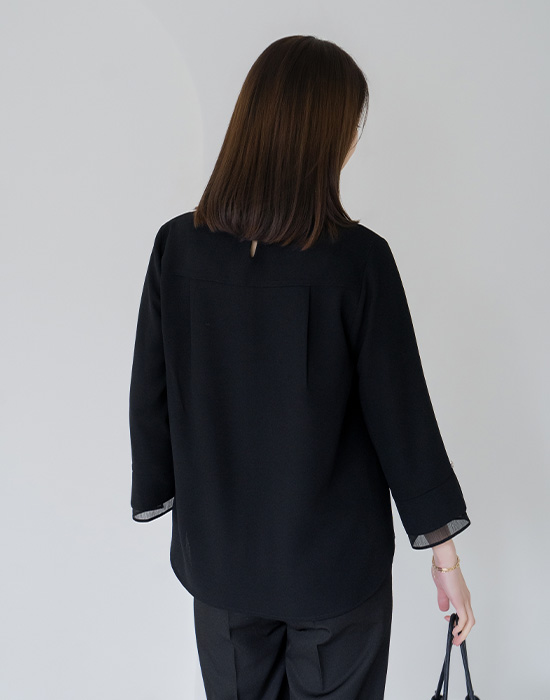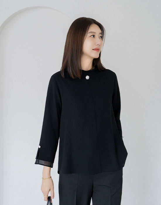 Pearl Frill Neck Blouse - BL2603019 -