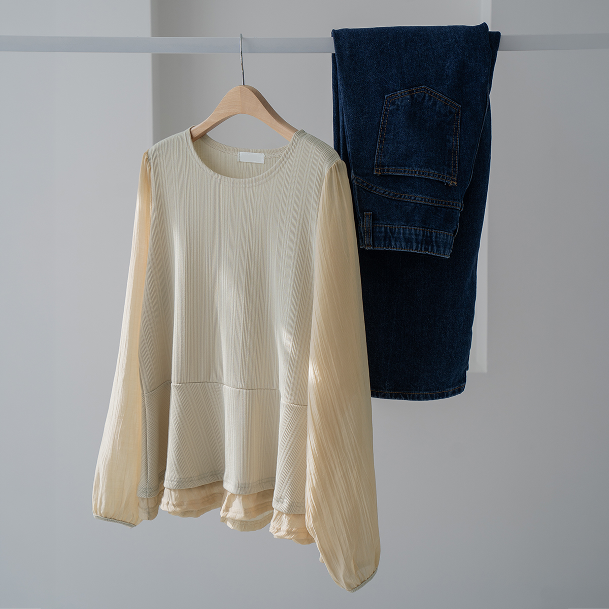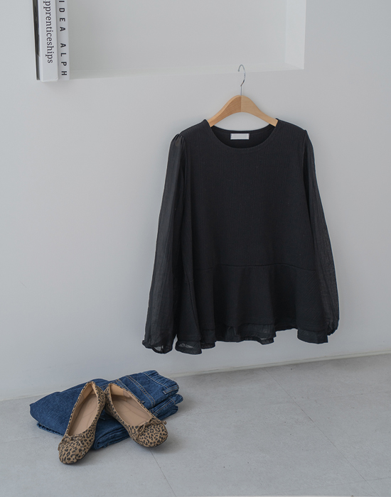 [Risen] Peplum See-through Blouse-LBL2603003-