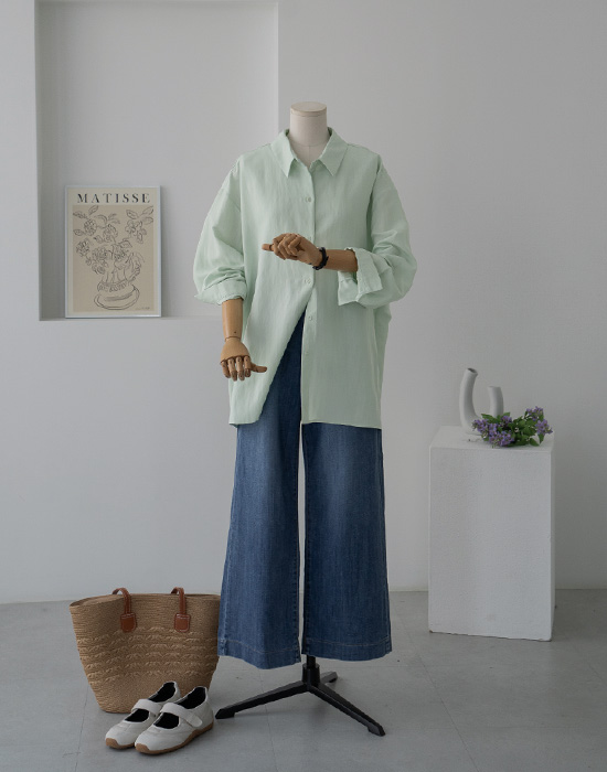 [Risen] Asymmetrical Back Button Shirt-LBL2603007-