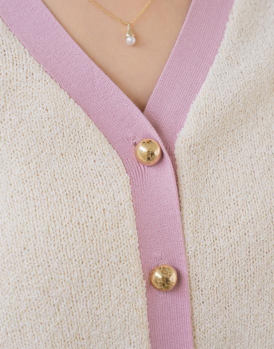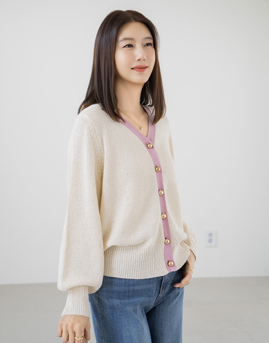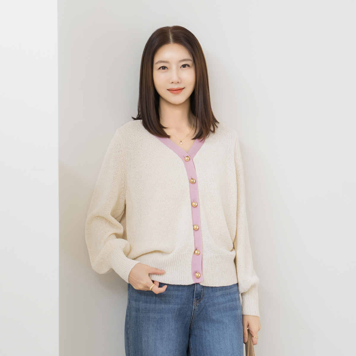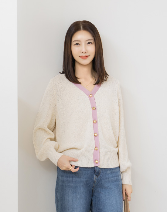 Boucle Contrast Pom-Pom Cardigan-CA2603010-