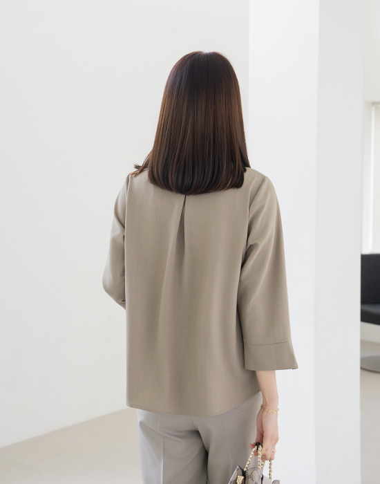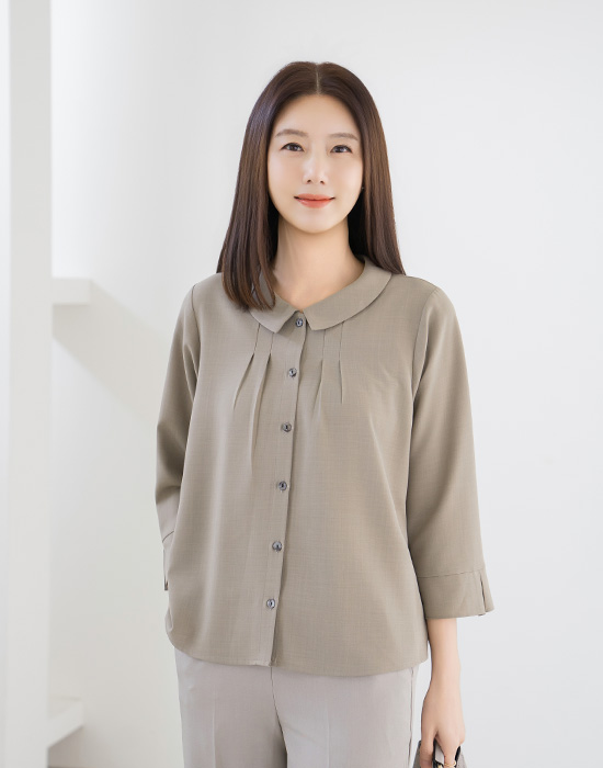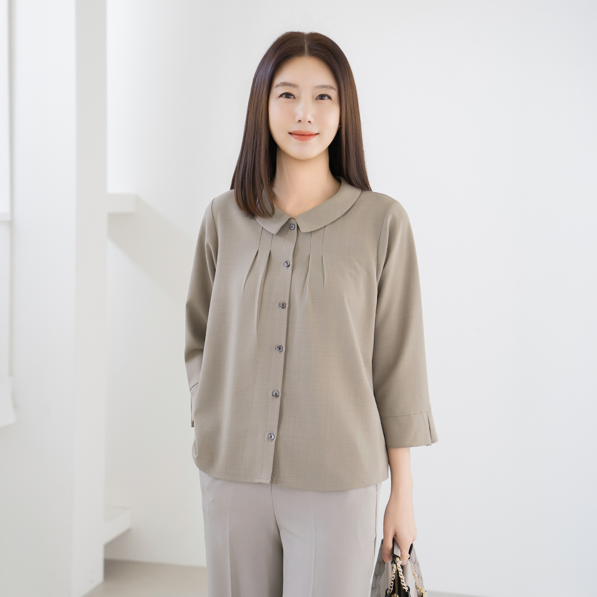 [Classy Madame] Pintuck Round Collar Blouse-BL2603026-