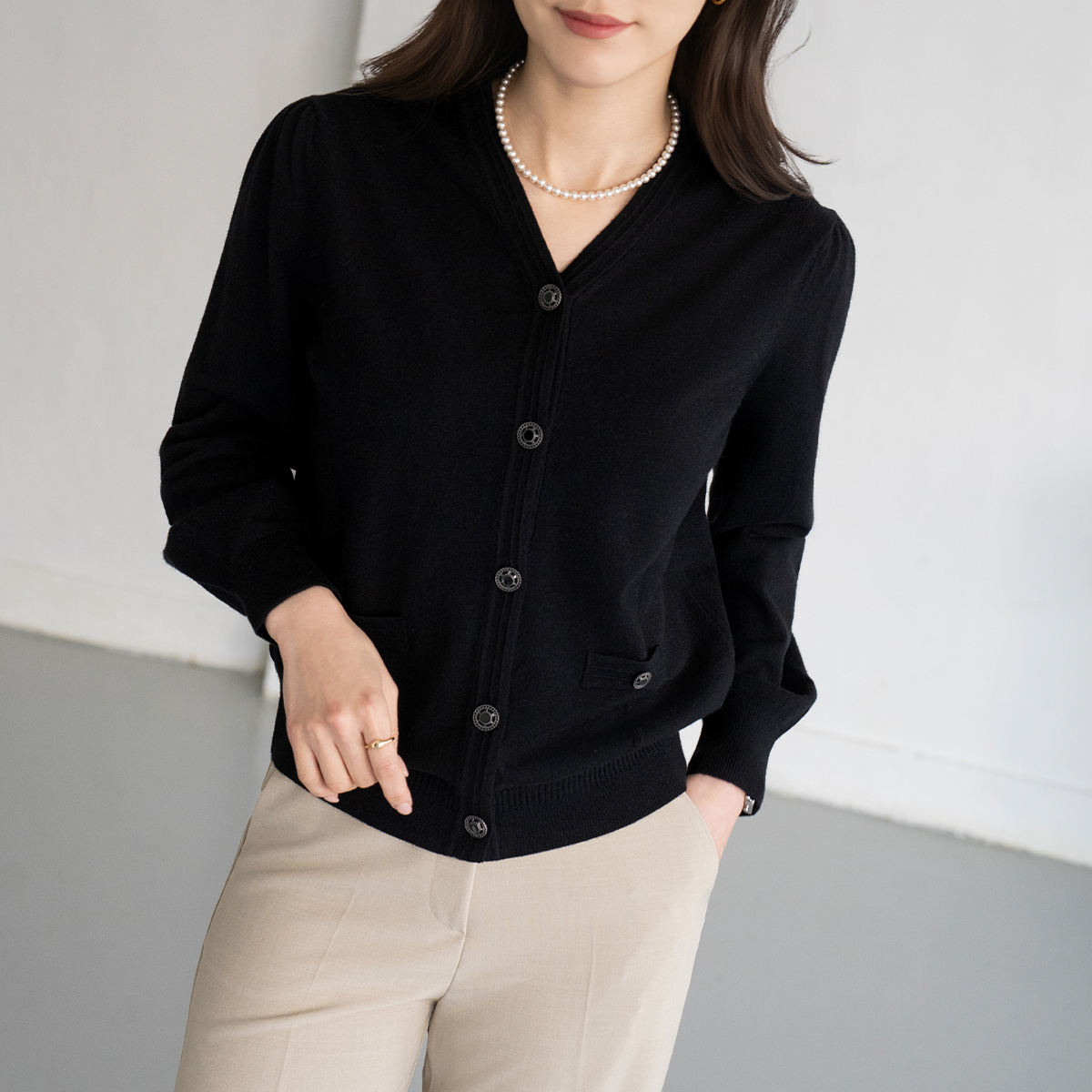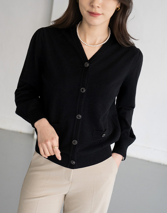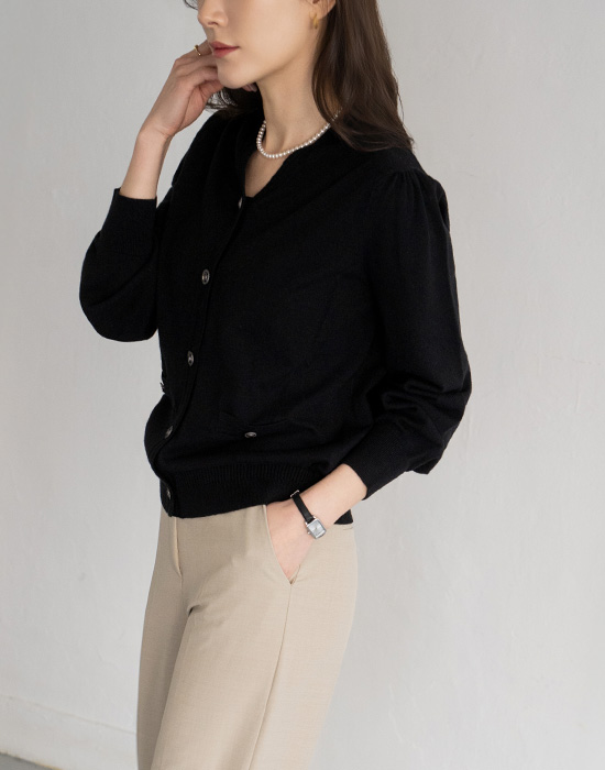 [Modern Basic] Puff 3D Button Cardigan-CA2603011-