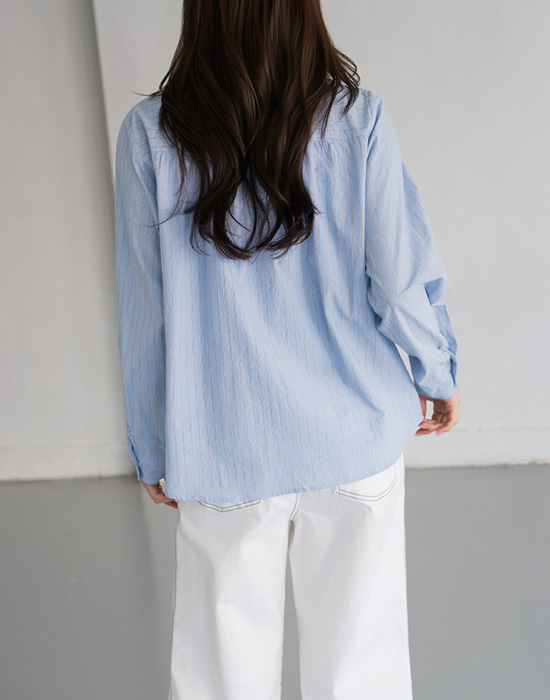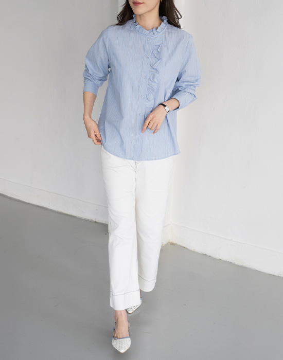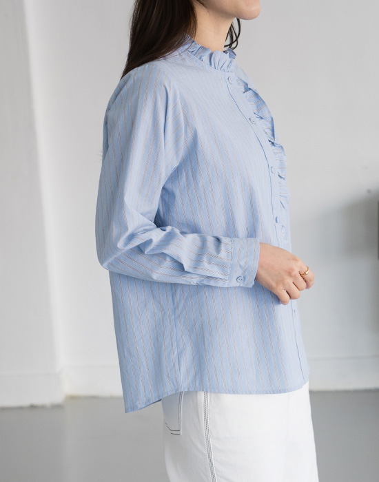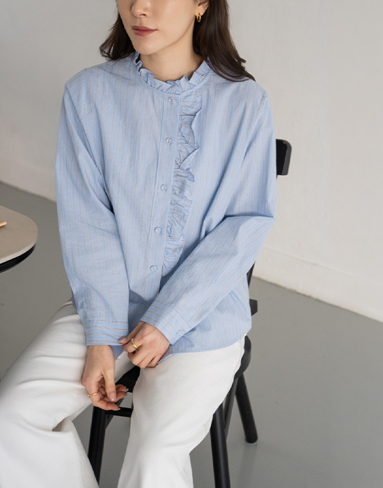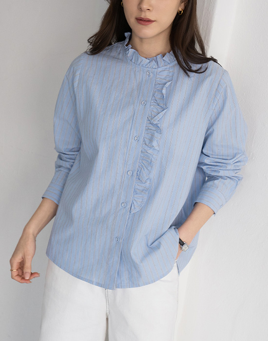 [Modern Basic] Striped Button Frill Shirt-BL2603031-