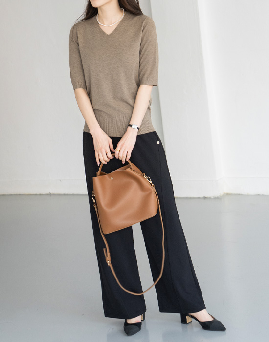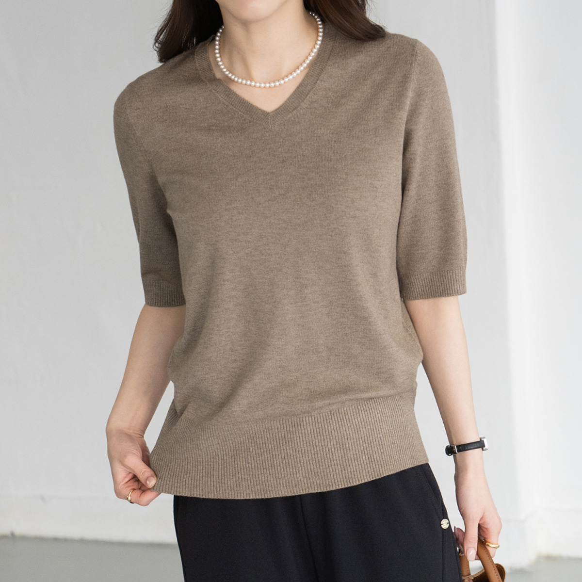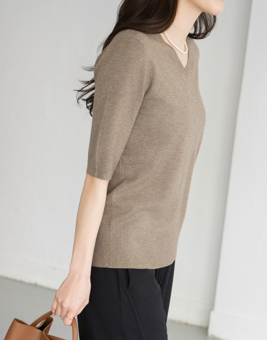 [Modern Basic] V-neck Knit T-shirt-TE2603040-