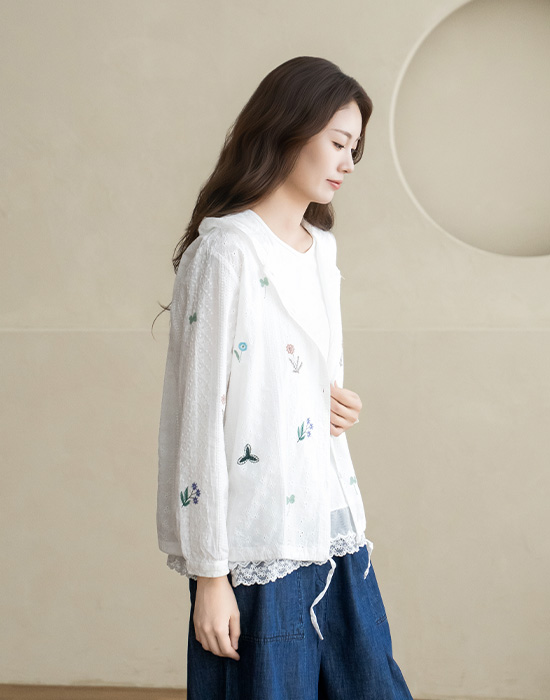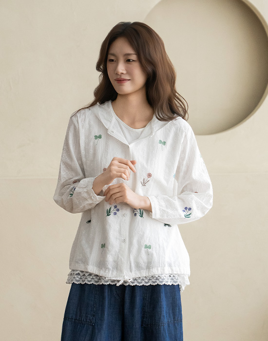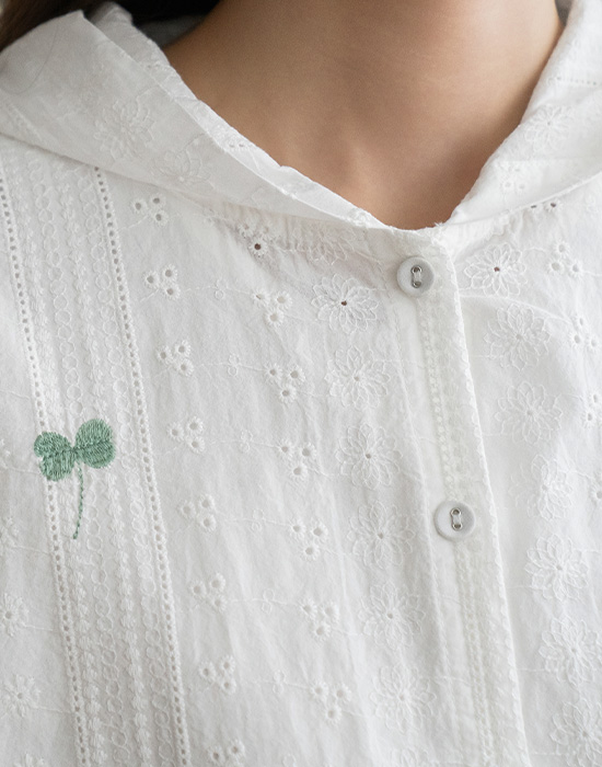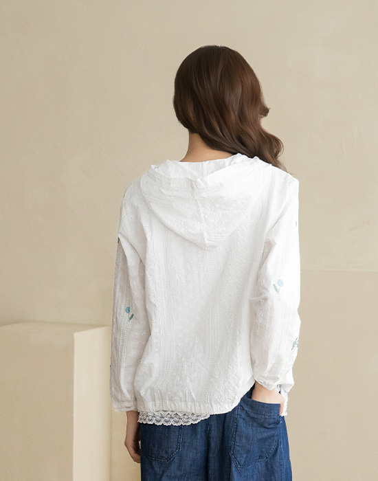 [Natural Poem] Lace Embroidered Hooded Blouse-BL2603034-