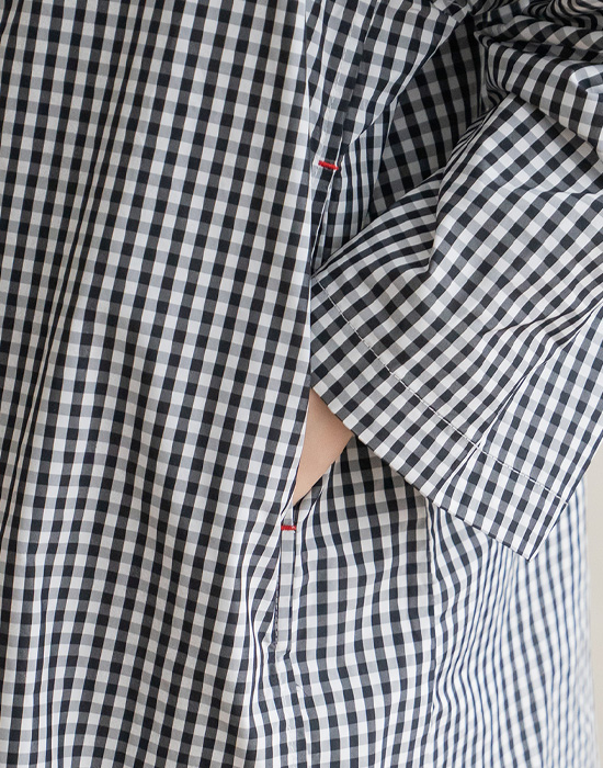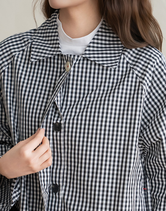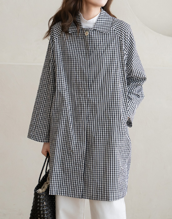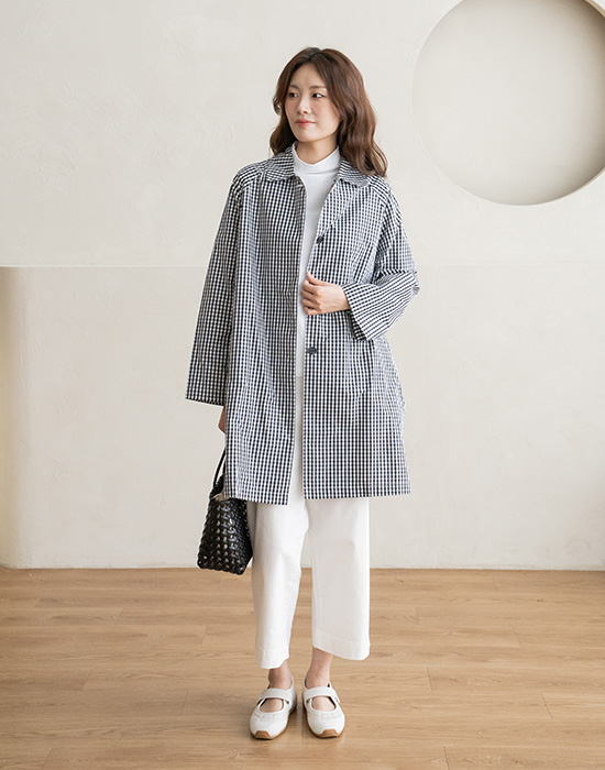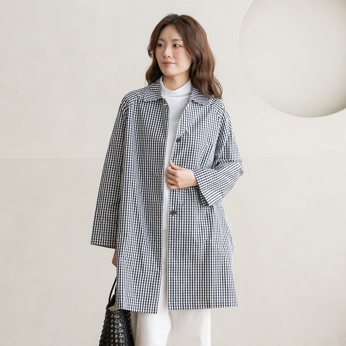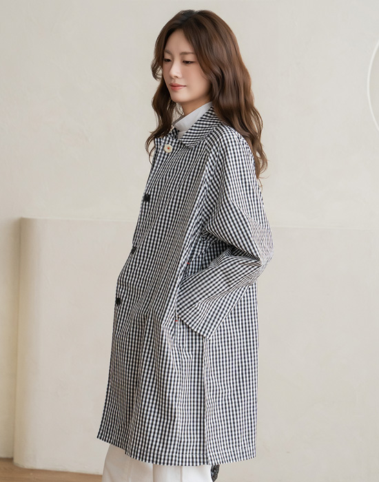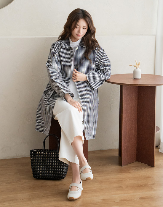 [Natural Poem] Gingham Check Trench Coat-CO2603007-