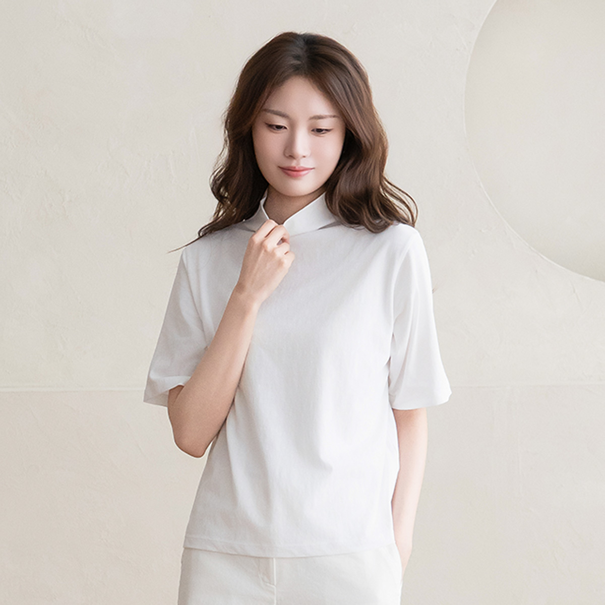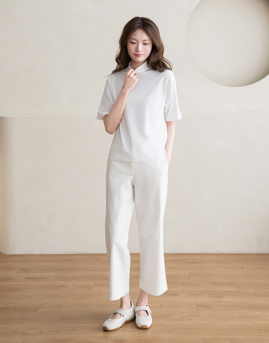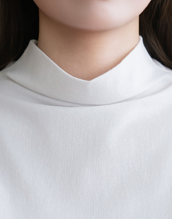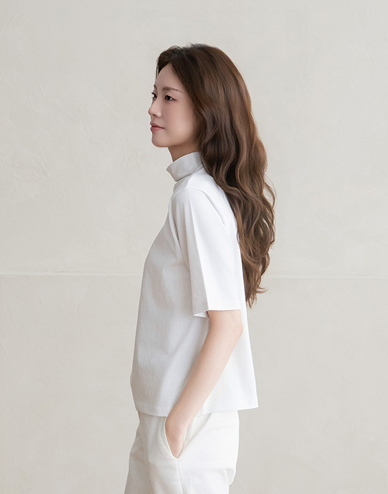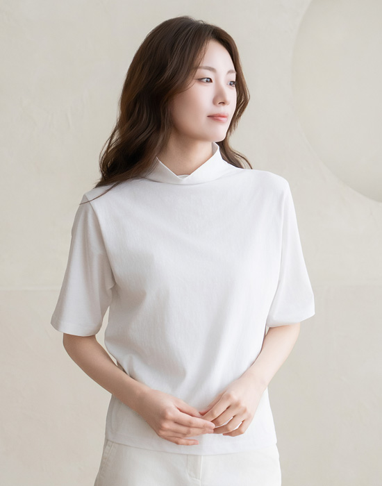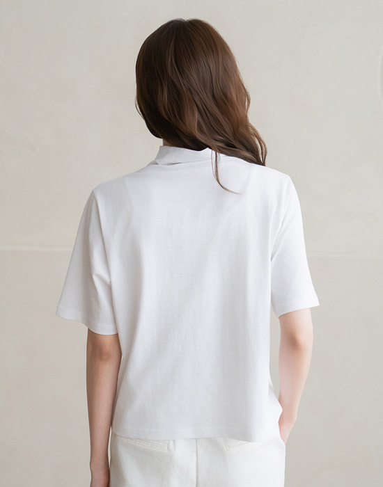 [Natural Poem] Mock Neck Plain Short Sleeve T-shirt-TE2603047-