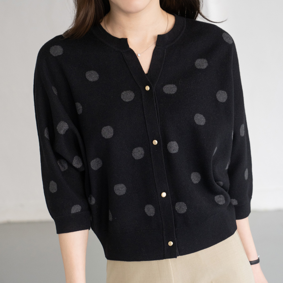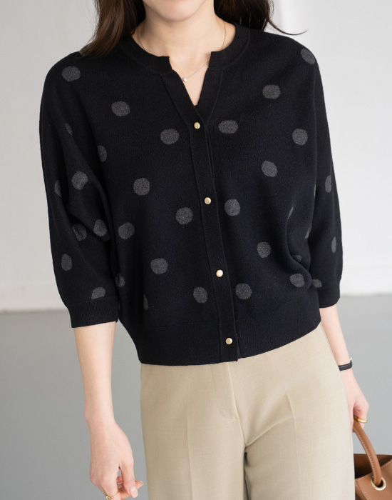[Modern Basic] Polka Dot Batwing Knit Cardigan-CA2603012-
