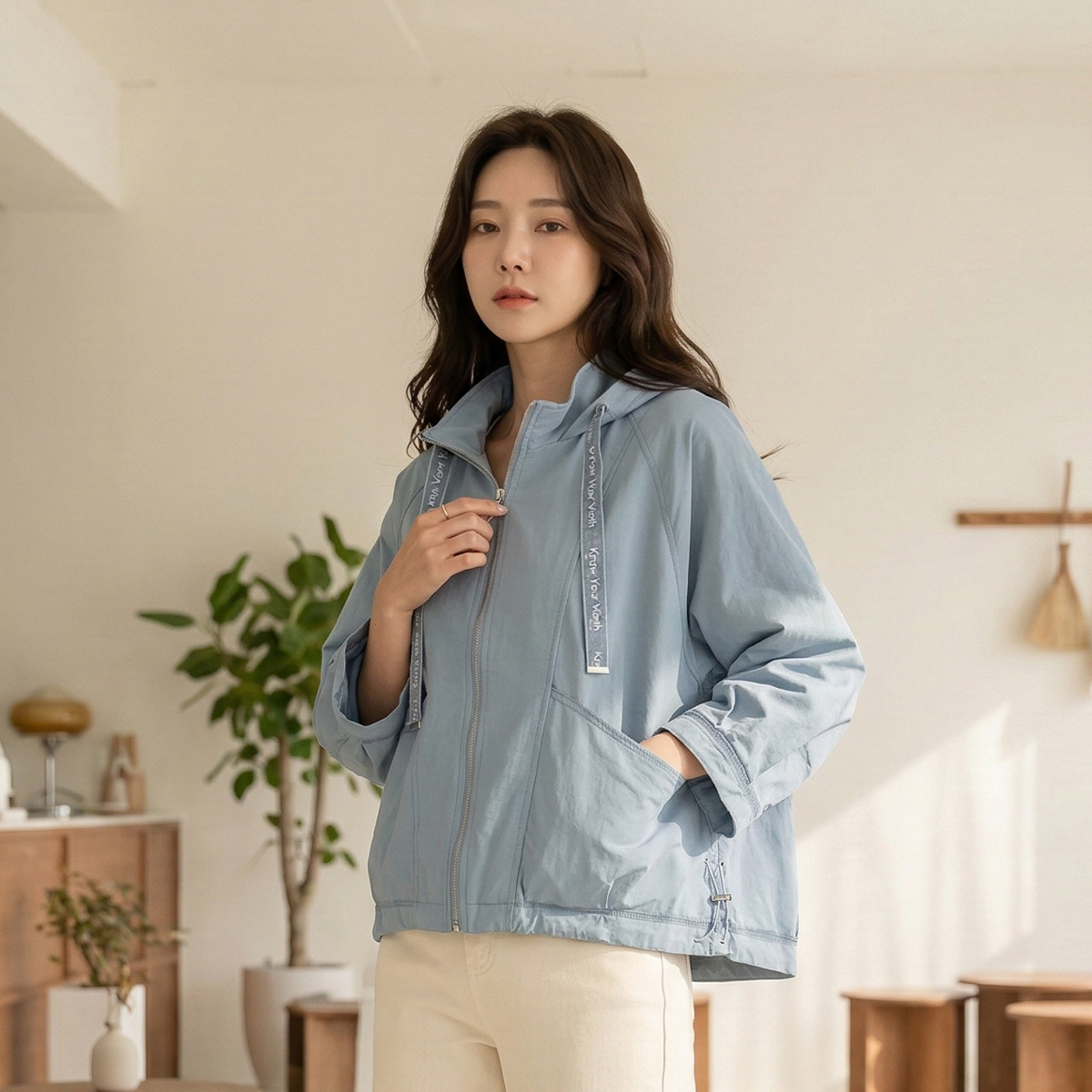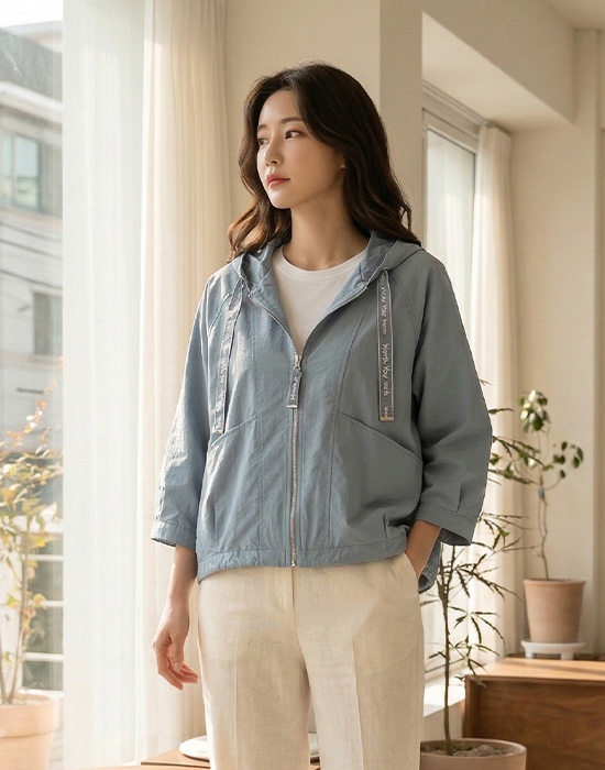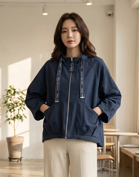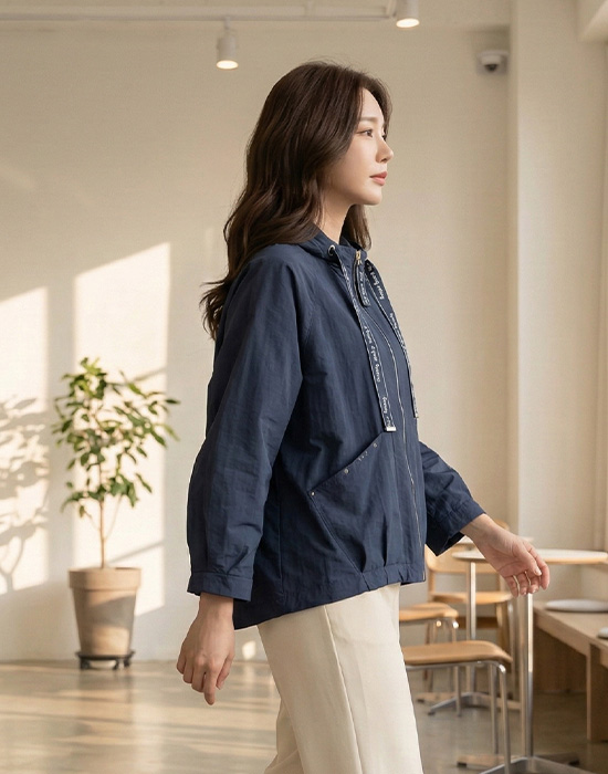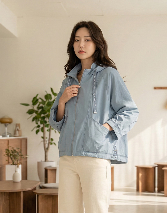 Organza Drawstring Zip-Up Jumper-JP2603014-