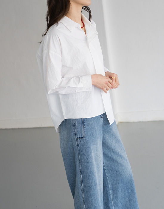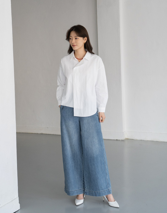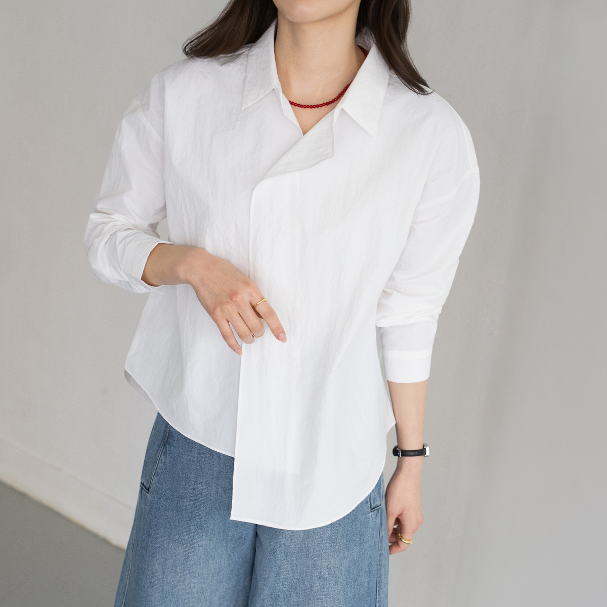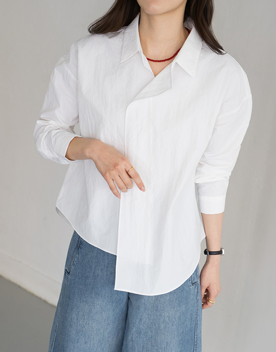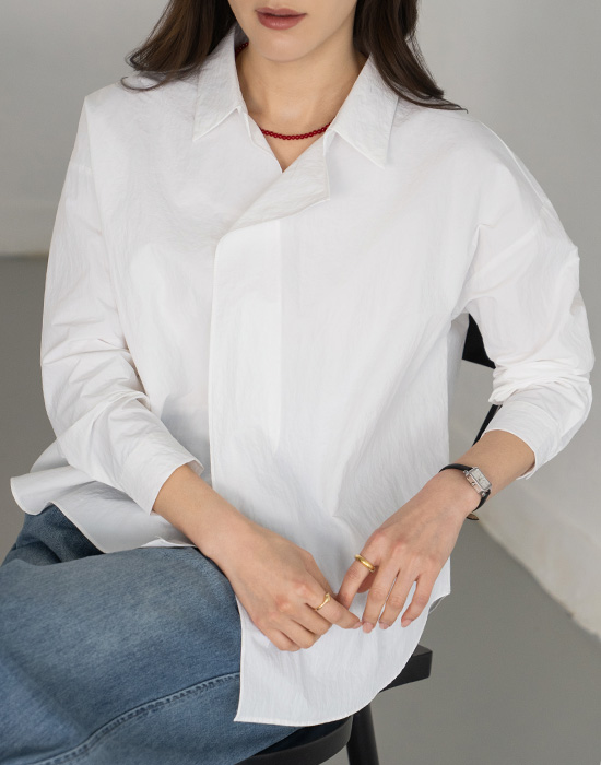 [Modern Basic] Cut-out Asymmetrical Crinkle Shirt-BL2603029-
