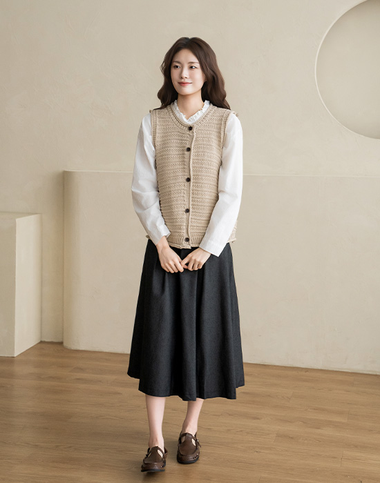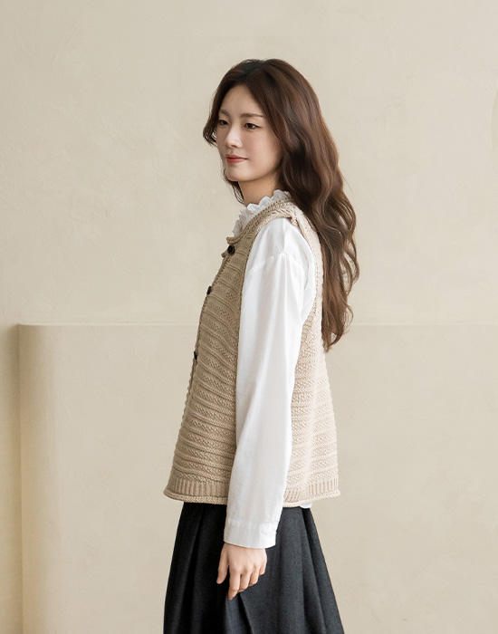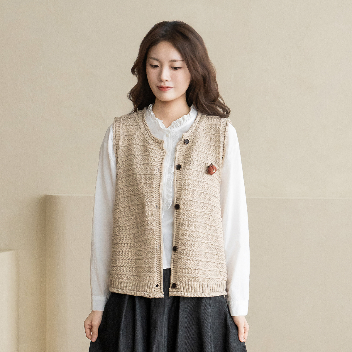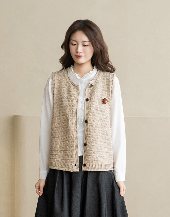 [Natural Poem] Brooch Knit Vest-VE2603015-